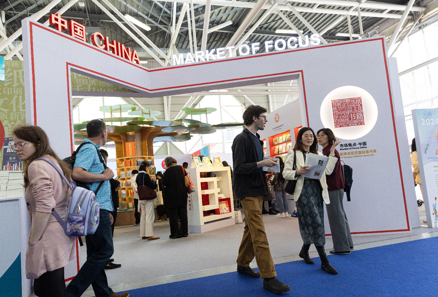 4月8日,人们在意大利博洛尼亚举行的第61届博洛尼亚国际童书展上交流。