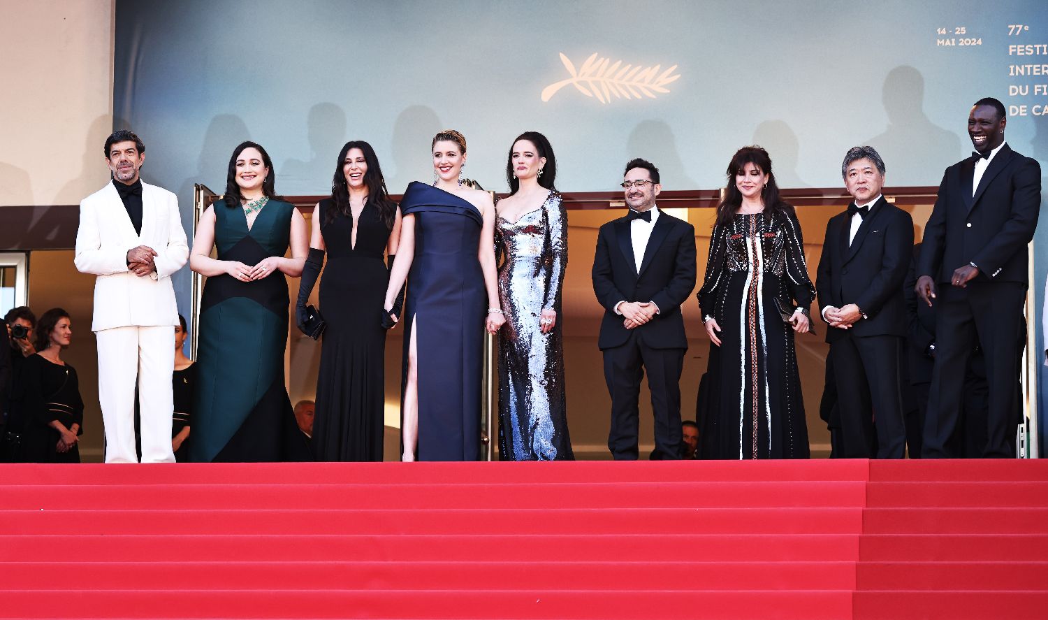 5月25日,在法国南部城市戛纳举行的第77届戛纳电影节上,主竞赛单元评委抵达闭幕式红毯。(图片来源:本文图片均据新华社)