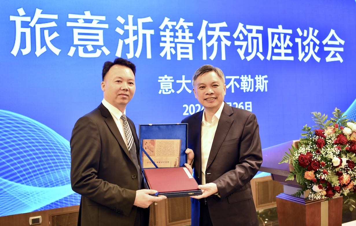 刘捷书记对在意华侨华人作出的贡献表示感谢。他指出,在意华人华侨是我省侨胞的重要力量,是我省对外开放的重要桥梁纽带。大家在意大利艰苦创业奋斗,弘扬中华的优秀传统文化同时,与祖国保持着密切的联系,很多侨胞回国投资兴业为中意的合作发展做出了非常重要的贡献。当前,杭州正深入学习贯彻习近平总书记考察浙江的重要讲话精神,按照省委部署要求,因地制宜发展新质生产力,加快打造世界一流的社会主义现代化国际大都市。希望大家能够多回家看一看,把意大利的特色优势产业与杭州发展相结合,共同把家业建设得更加美好。