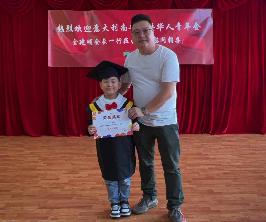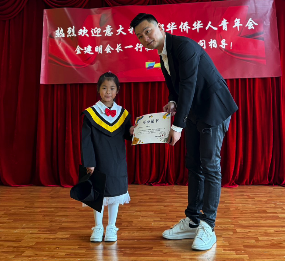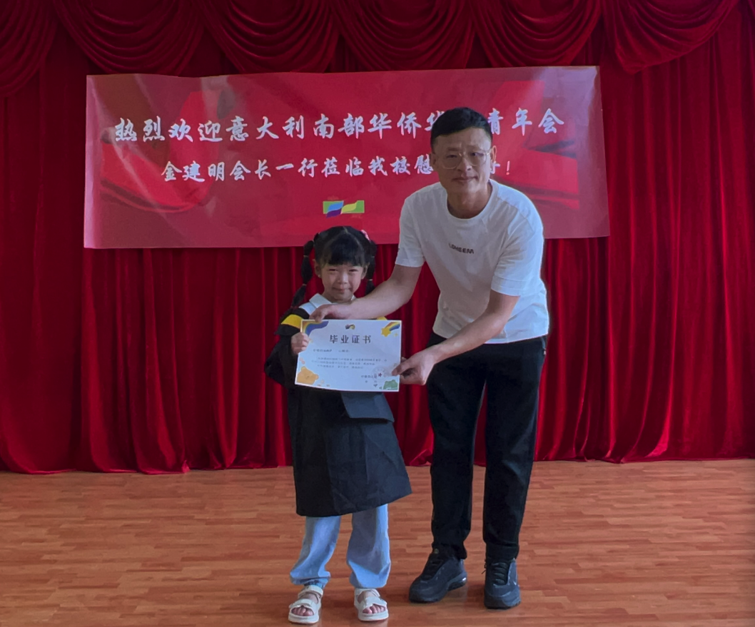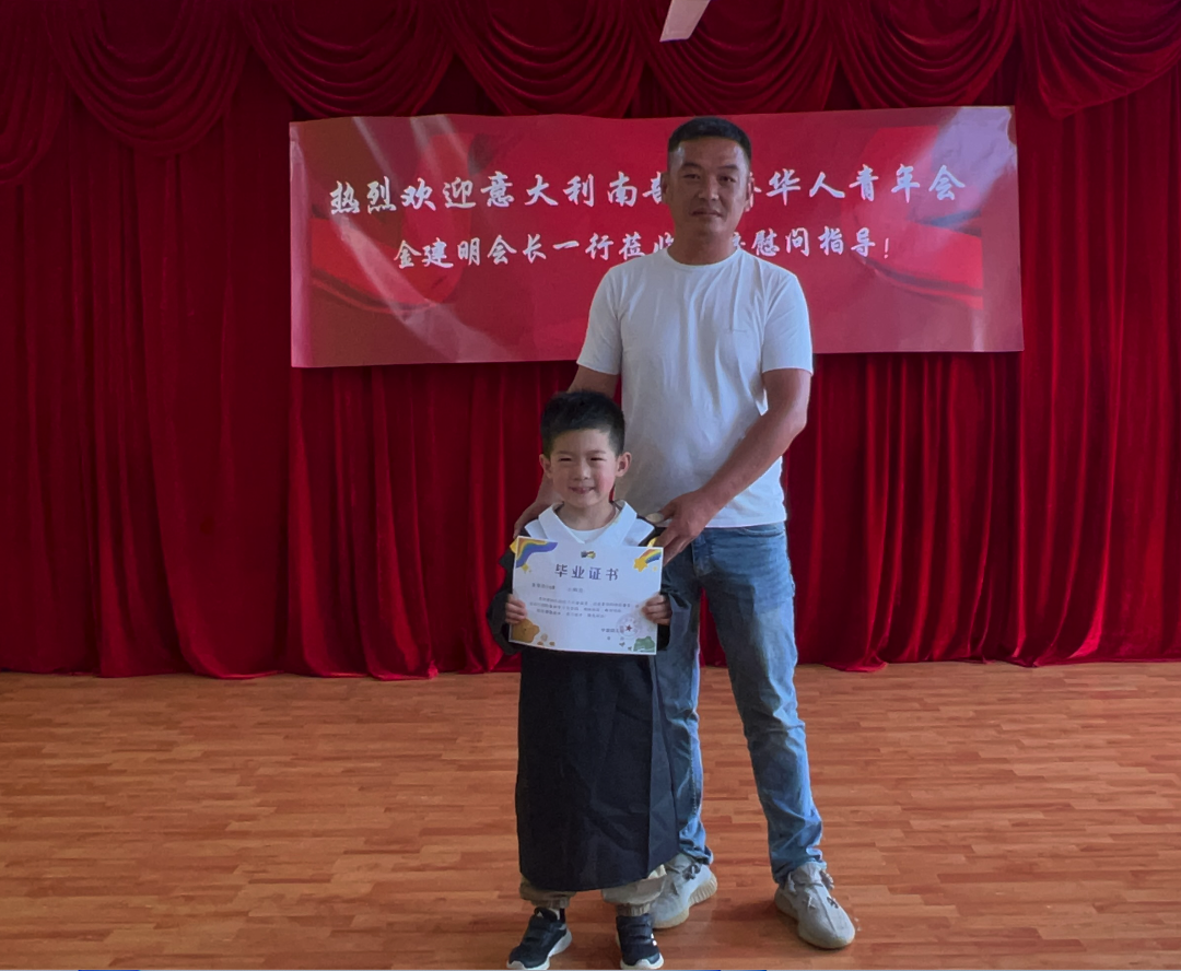 金建明会长表示,孩子是祖国的花朵、民族的希望、国家的未来。希望孩子们乘着阳光,带着梦想,勤奋上进,勇敢善良。不要忘记我们是华人,我们的根在中国,要好好学习中华语言和文化,努力成为祖国的栋梁之才和中意友谊的使者。