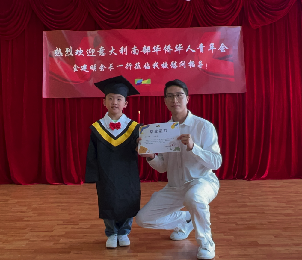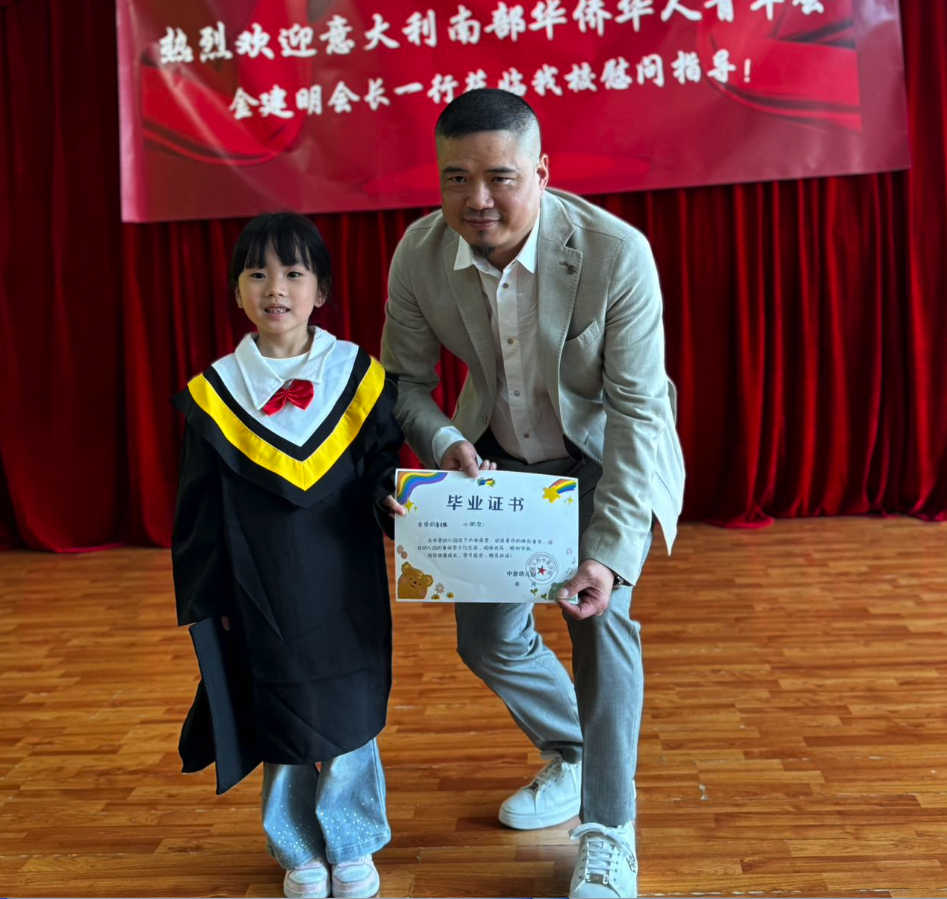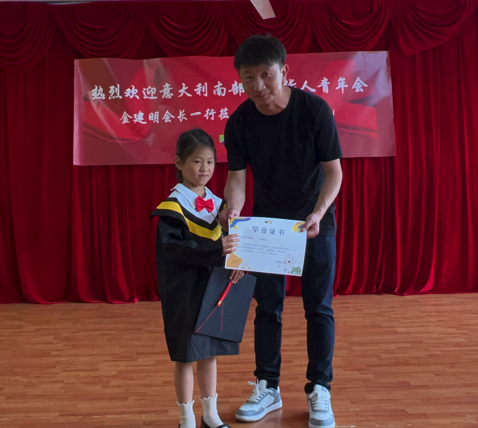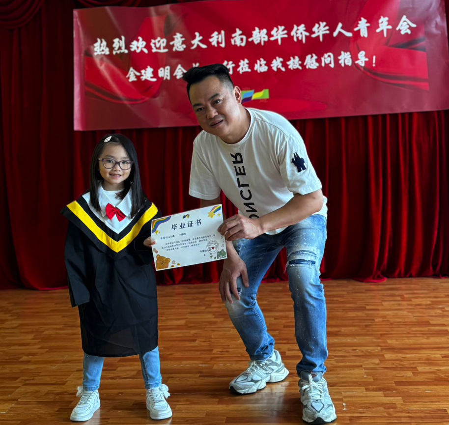 金建明会长表示,孩子是祖国的花朵、民族的希望、国家的未来。希望孩子们乘着阳光,带着梦想,勤奋上进,勇敢善良。不要忘记我们是华人,我们的根在中国,要好好学习中华语言和文化,努力成为祖国的栋梁之才和中意友谊的使者。