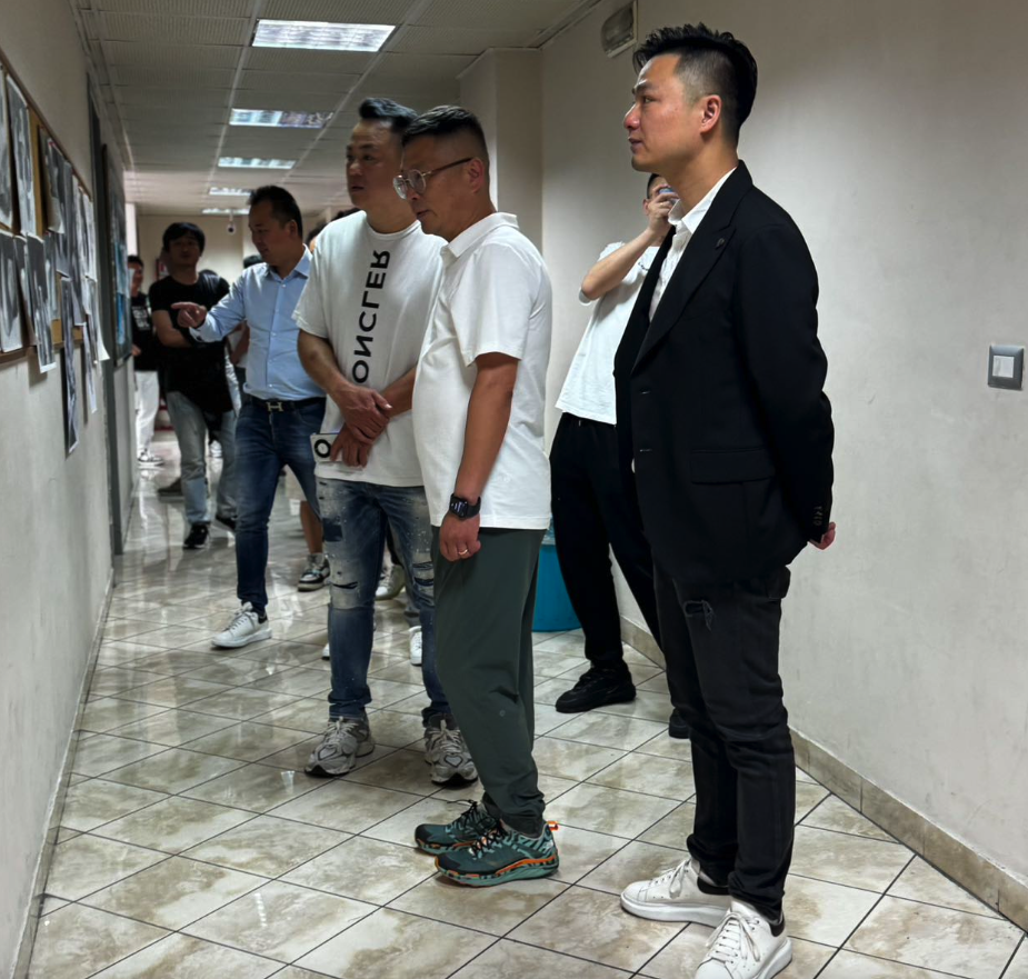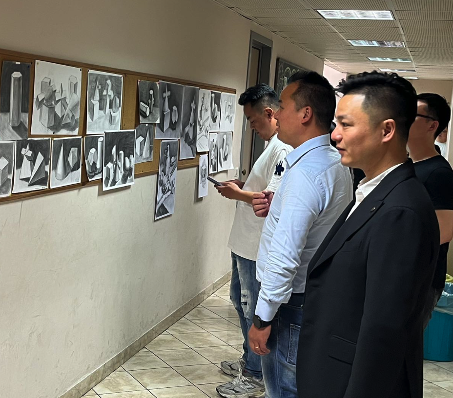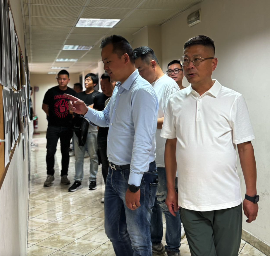 意大利南部华侨华人青年会会长团成员在中意学校校长傅文武陪同下详细了解学校基础设施、素质教育、校园文化建设等情况,走进教室认真观摩学生们的课程。