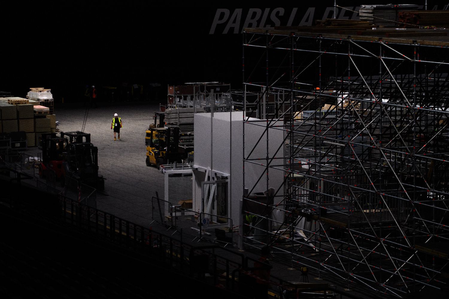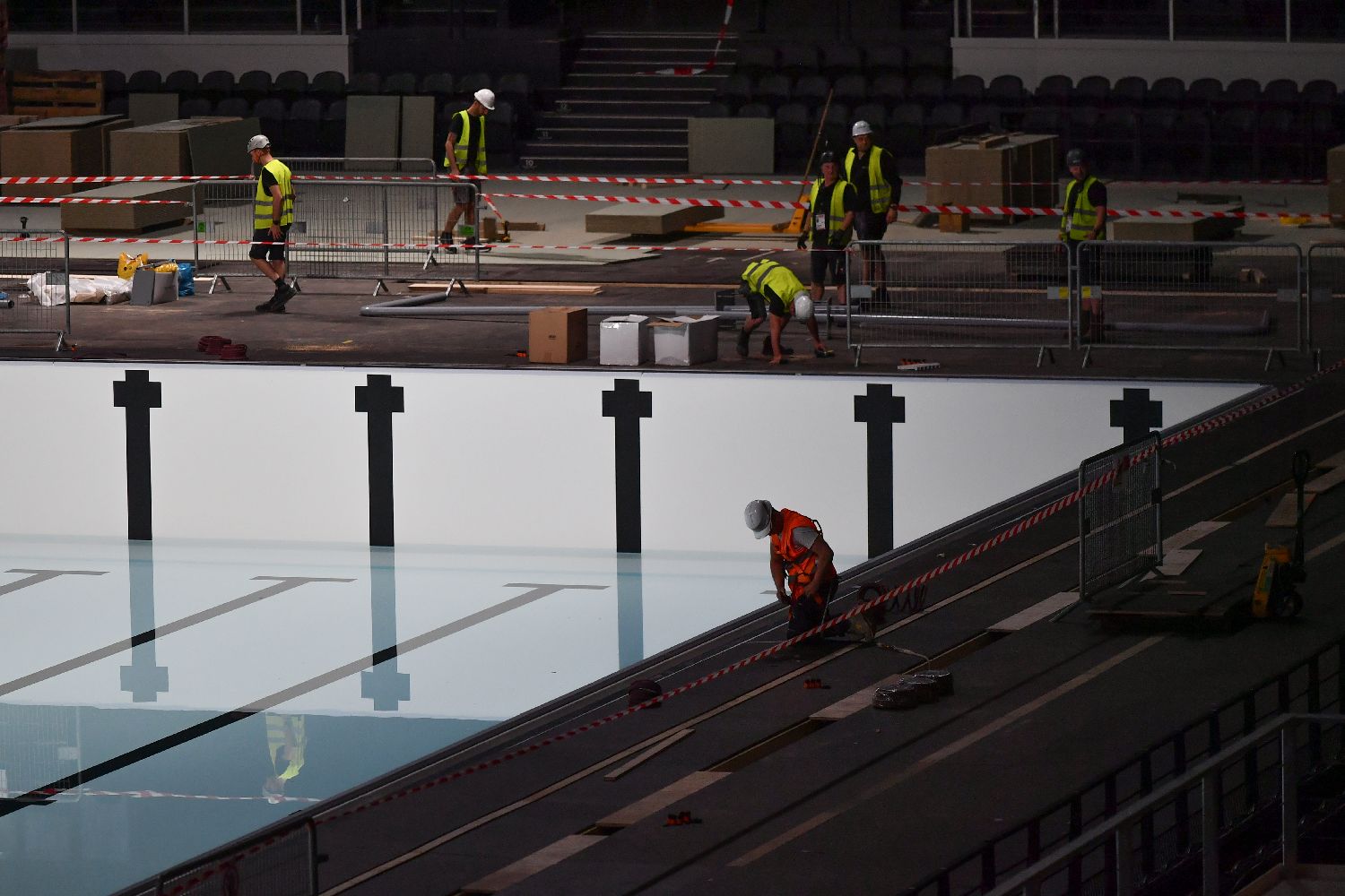 6月12日,工作人员在拉德芳斯体育馆内工作。