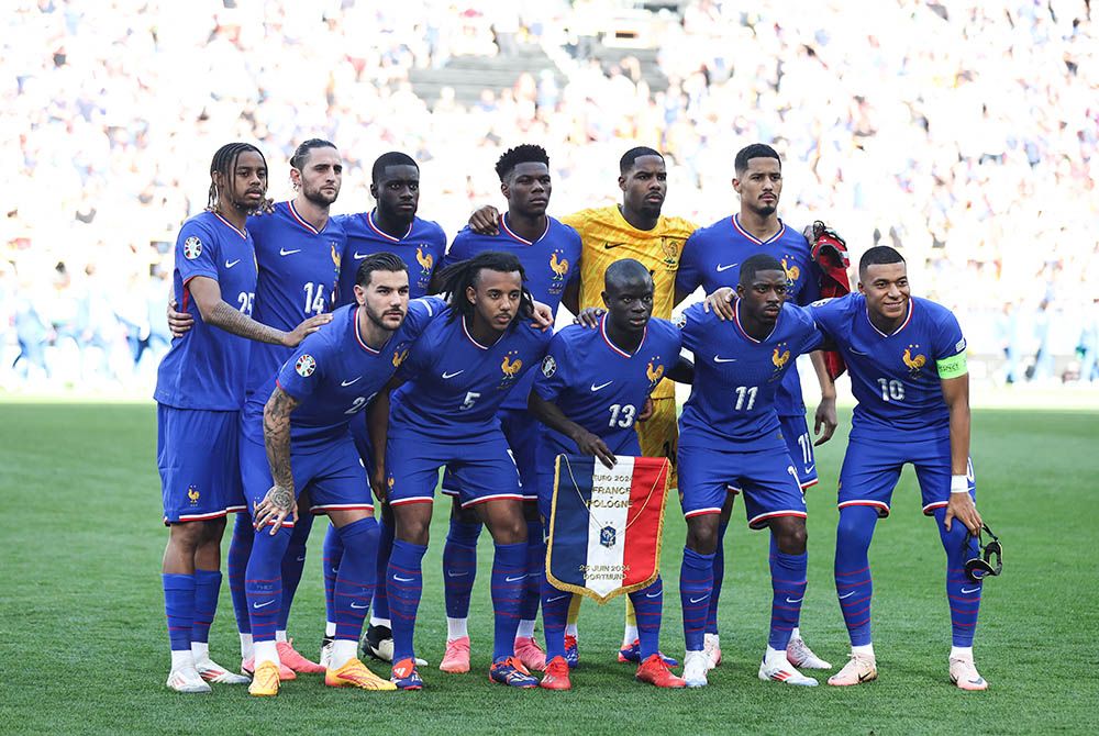 法国队首发球员在比赛前合影。