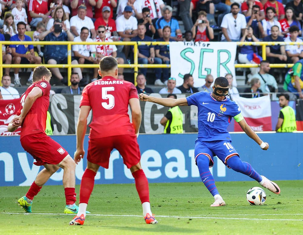 6月25日,在德国多特蒙德进行的2024欧洲足球锦标赛D组第三轮比赛中,法国队1∶1战平波兰队。