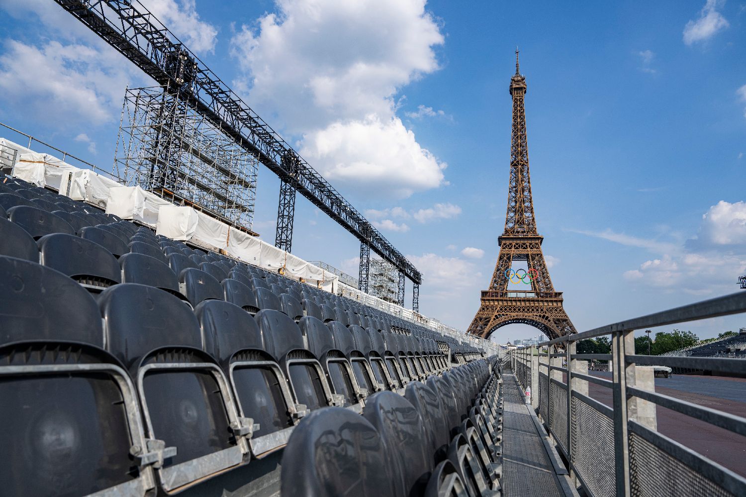 6月26日拍摄的特罗卡德罗广场的舞台背后一角。