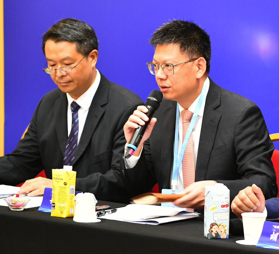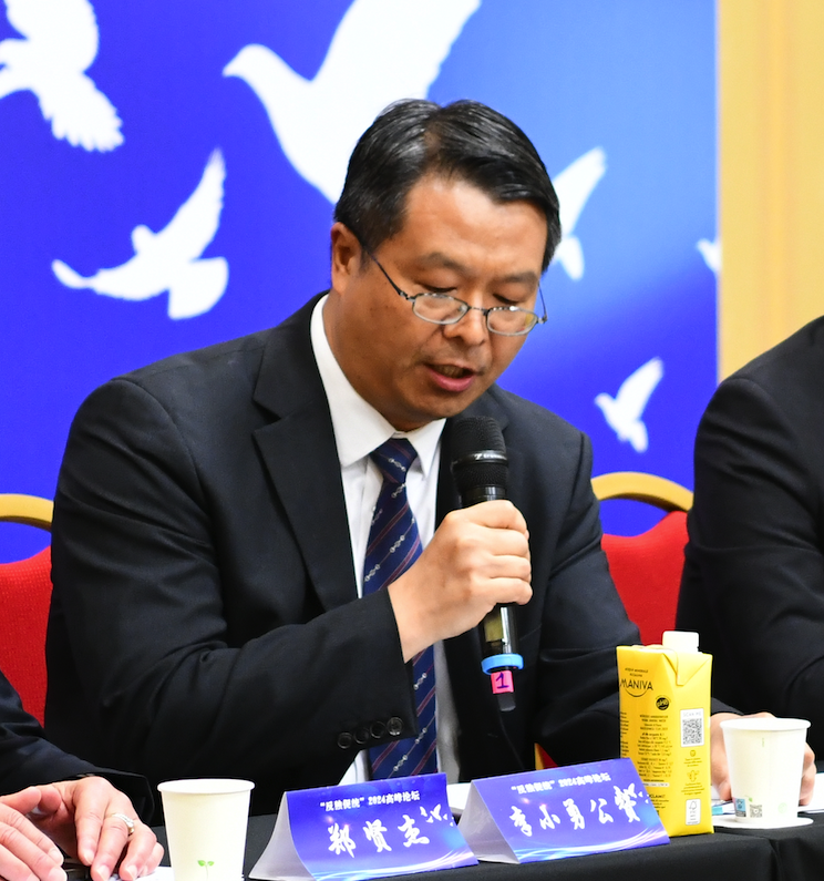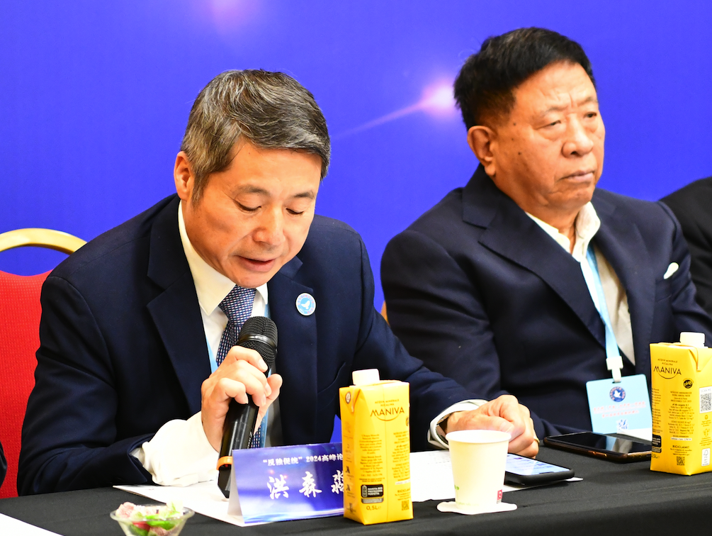 意大利(中国)和平统一促进会第一常务副会长、意大利华商总会会长洪森淼在论坛上发言