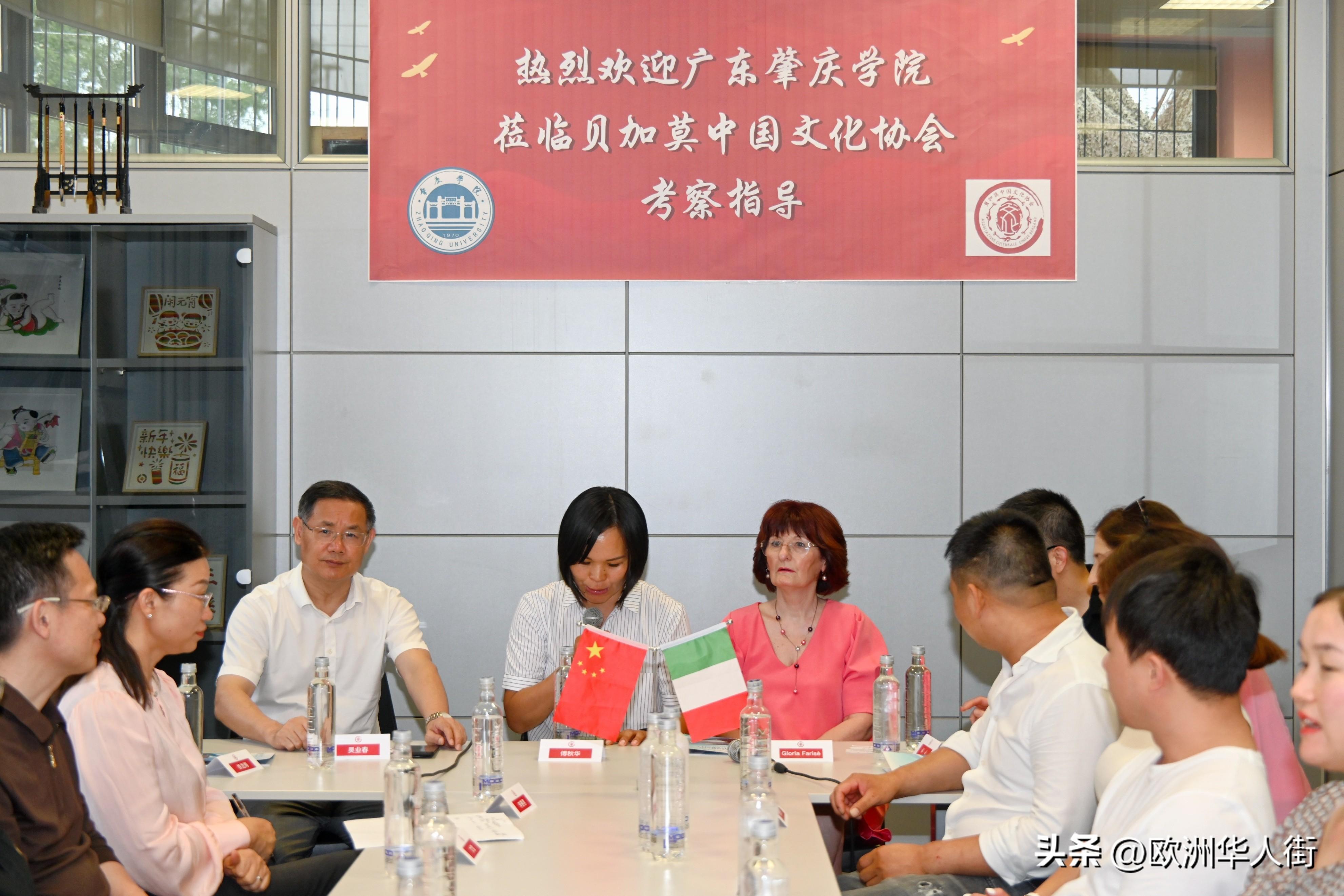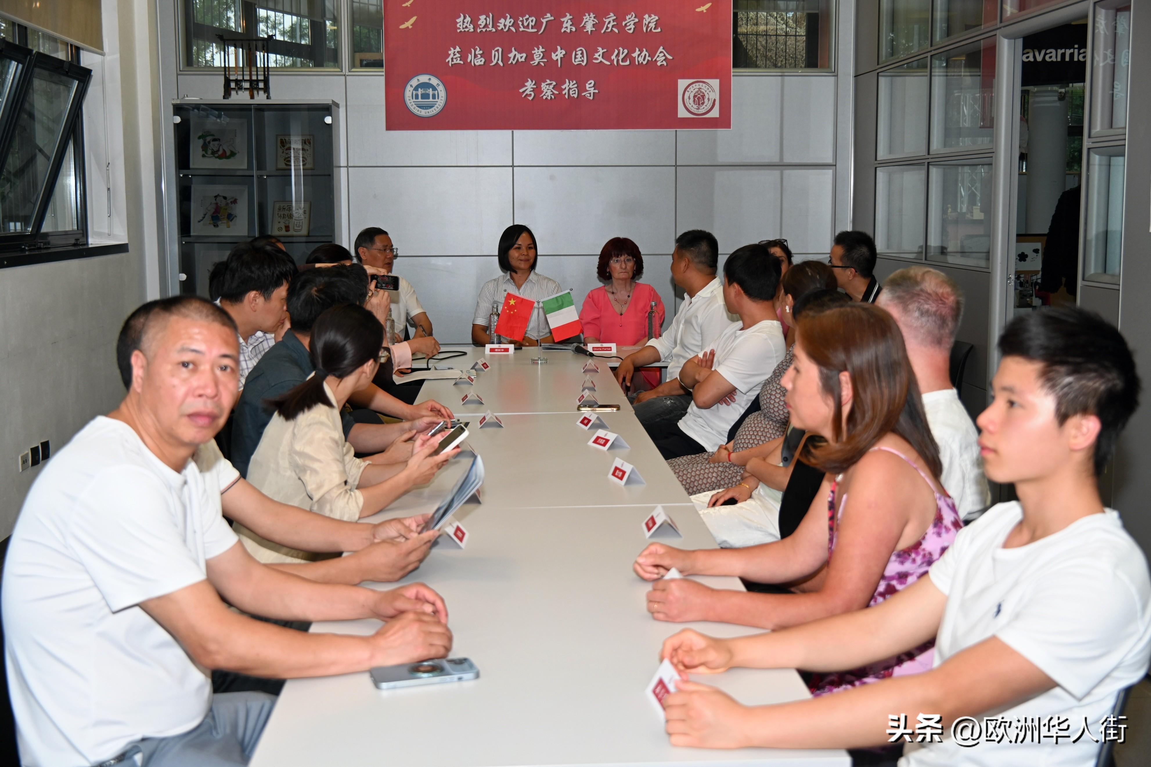 意大利《华人街》消息:2024年7月6日晚,贝加莫中国文化协会热情迎接了由肇庆学院校长吴业春带领的考察团一行。宾主双方在参观了文化中心展示厅后,举行了一场热烈而富有成效的座谈会。