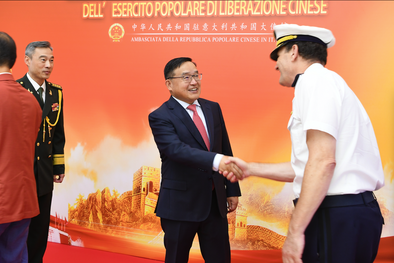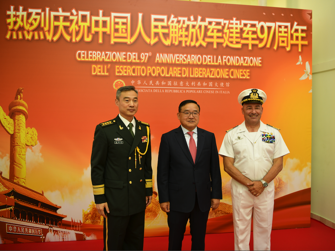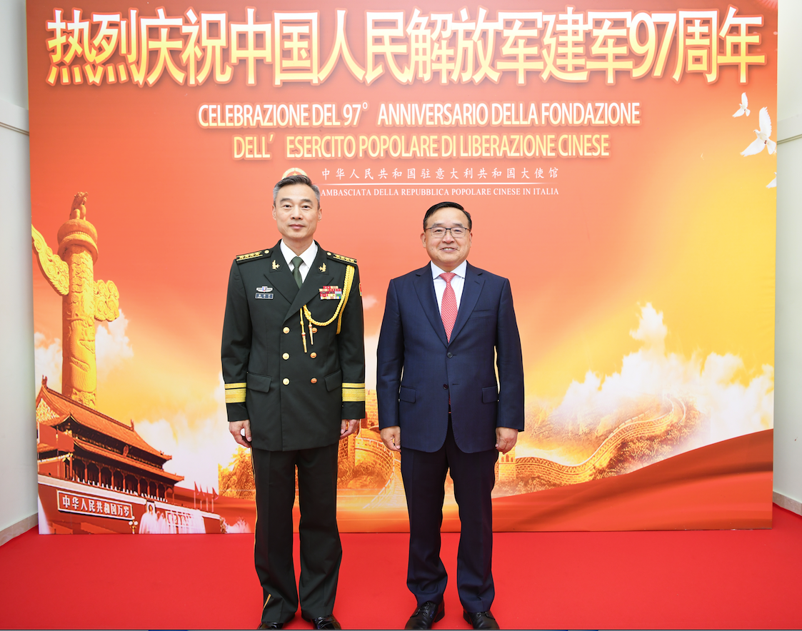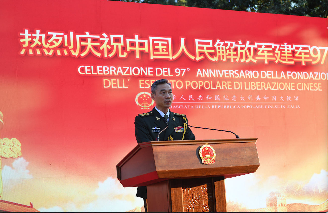 意大利《华人街》(孙玮报道)驻意使馆消息:7月18日,驻意大利使馆举行庆祝中国人民解放军建军97周年招待会。意国防部、国防参谋部、各军种参谋部等军队部门负责人,意总理府、外交部、内政部等政府代表,驻意武官团成员,中资机构、驻意央媒及华人华侨代表等300余人参加。贾桂德大使出席,国防武官张济宇大校致辞。