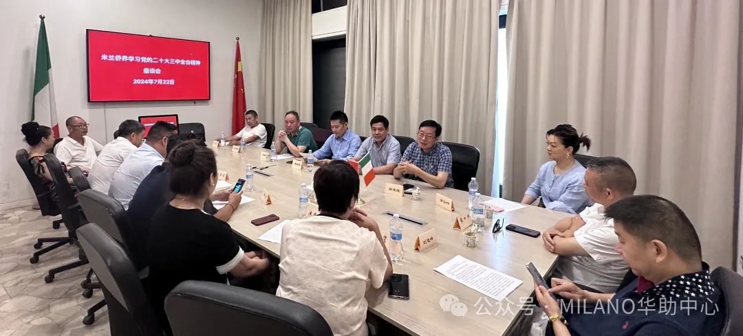 7月23日上午,由米兰华侨华人工商会牵头组织,召集米兰侨界相关侨团负责人,举行学习领会“二十大三中全会”精神座谈会。米兰华侨华人工商会会长黄国权、名誉会长周斌、李秀桐、执行会长池小云、意大利瑞安商会林瑞诞、意大利北部华侨华人经贸总会会长赵建锋、意大利中意商联会长林杰、意大利青田总商会执行会长高泉他、中意商贸交流促进会会长刘晓春、米兰华侨华人妇女会秘书长陈晓霞、常务副会长廖翠微、米兰华侨华人妇女联谊总会会长余小叶、意大利华人企业协会执行会长陈思荣、意大利北部丽水同乡会会长刘旭峰、米兰华侨华人企业家联谊会理事长张松波、意大利宋庆龄基金会米兰分会执行会长赵晓敏等出席。