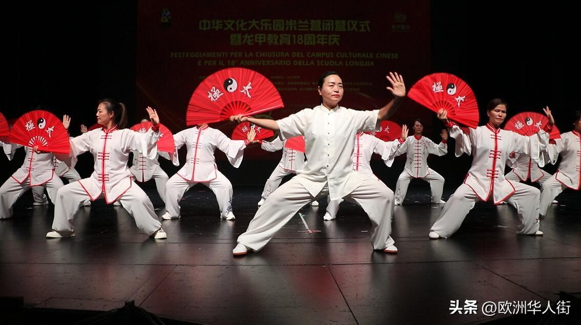 闭营仪式上,共有近500位小营员和大营员们登台表演。龙甲少年们以《龙腾鼓跃》拉开了汇报演出的序幕,中国鼓铿锵有力,战旗方阵猎猎作响,舞龙舞狮雄浑大气,将剧场气氛推向高潮。美轮美奂的节目轮番上演:中国舞蹈、手工书画联展、古筝、太极扇、太极拳、少林功夫、拉丁舞、音乐、朗诵、腰鼓等多种文化技艺的演出精彩纷呈,充分展现了中华文化的独特魅力和孩子们的非凡才艺,赢得了现场观众的高度赞誉,掌声和欢呼声此起彼伏。由米兰华侨华人妇女会参演的“太极扇”和手拉手协会带来的“陈氏太极拳”更是为太极文化下一步在米兰广泛的传播奠定了坚实的基础。