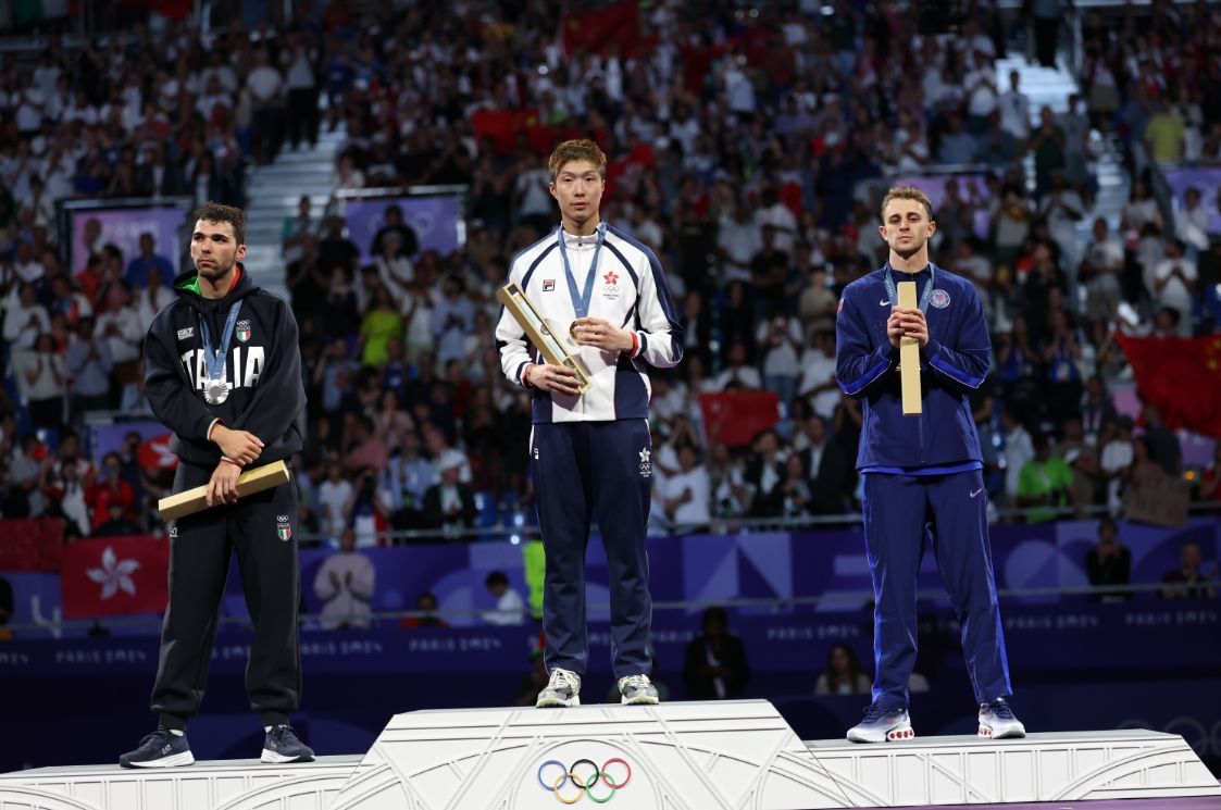 继中国香港运动员江旻憓夺得巴黎奥运会女子个人重剑赛事金牌后,29日,香港“剑神”张家朗为中国香港代表团再“刺”下一金。
