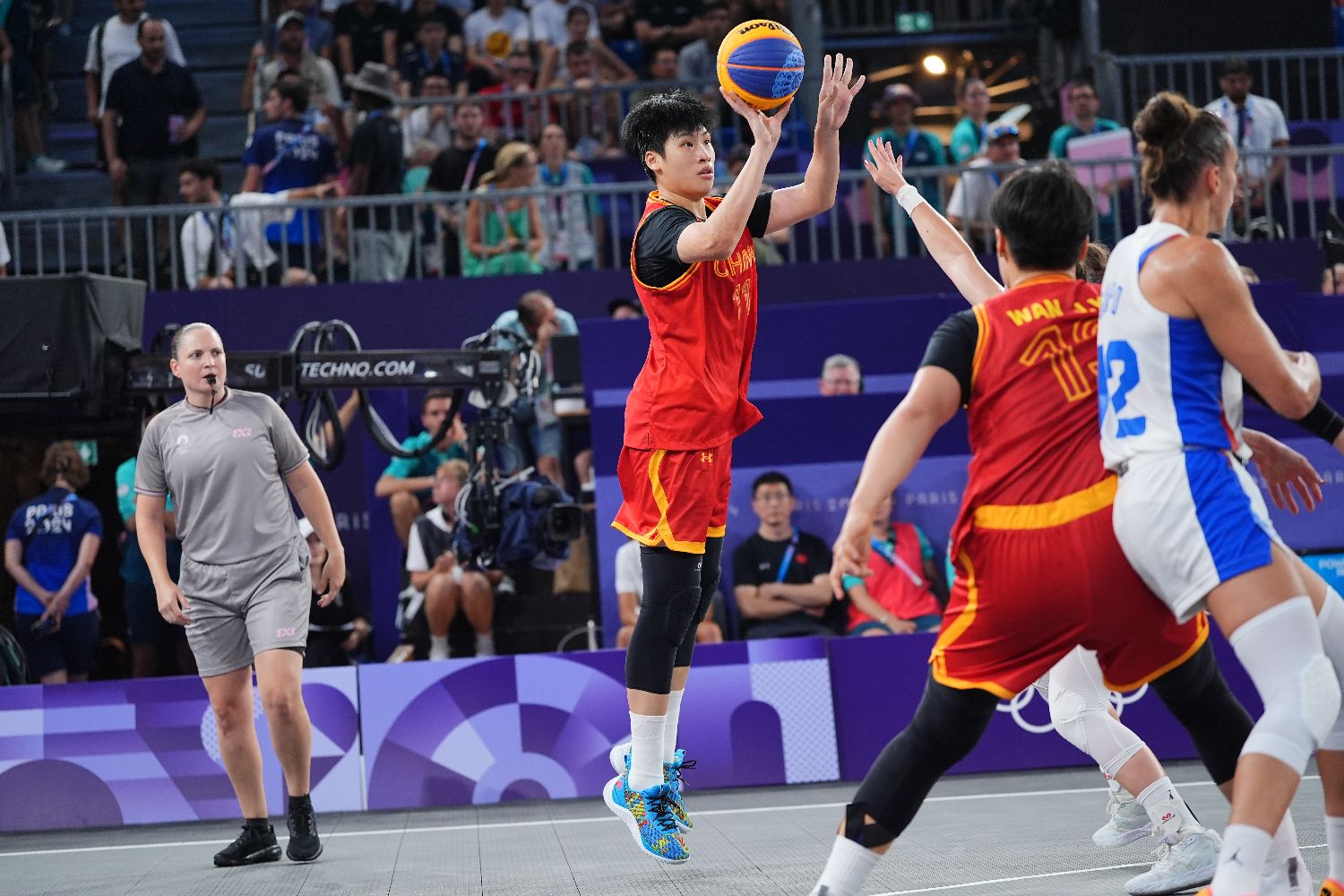 30日,在巴黎奥运会女子三人篮球的比赛中,中国队21比19击败法国队。