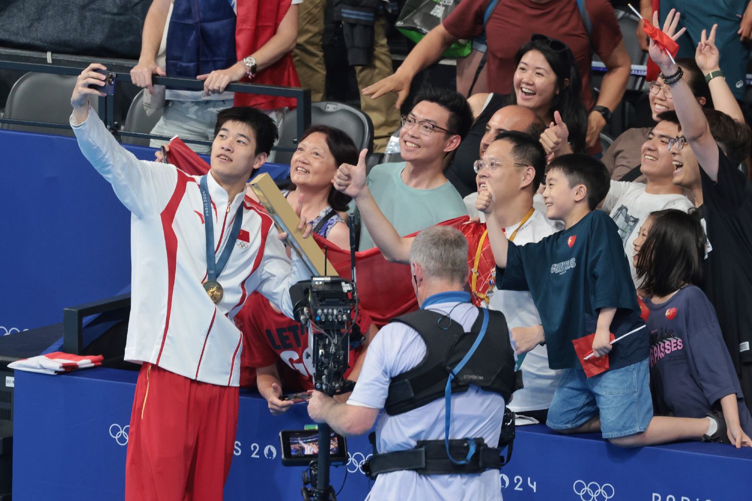 潘展乐与观众合影。(图片来源:香港中通社)