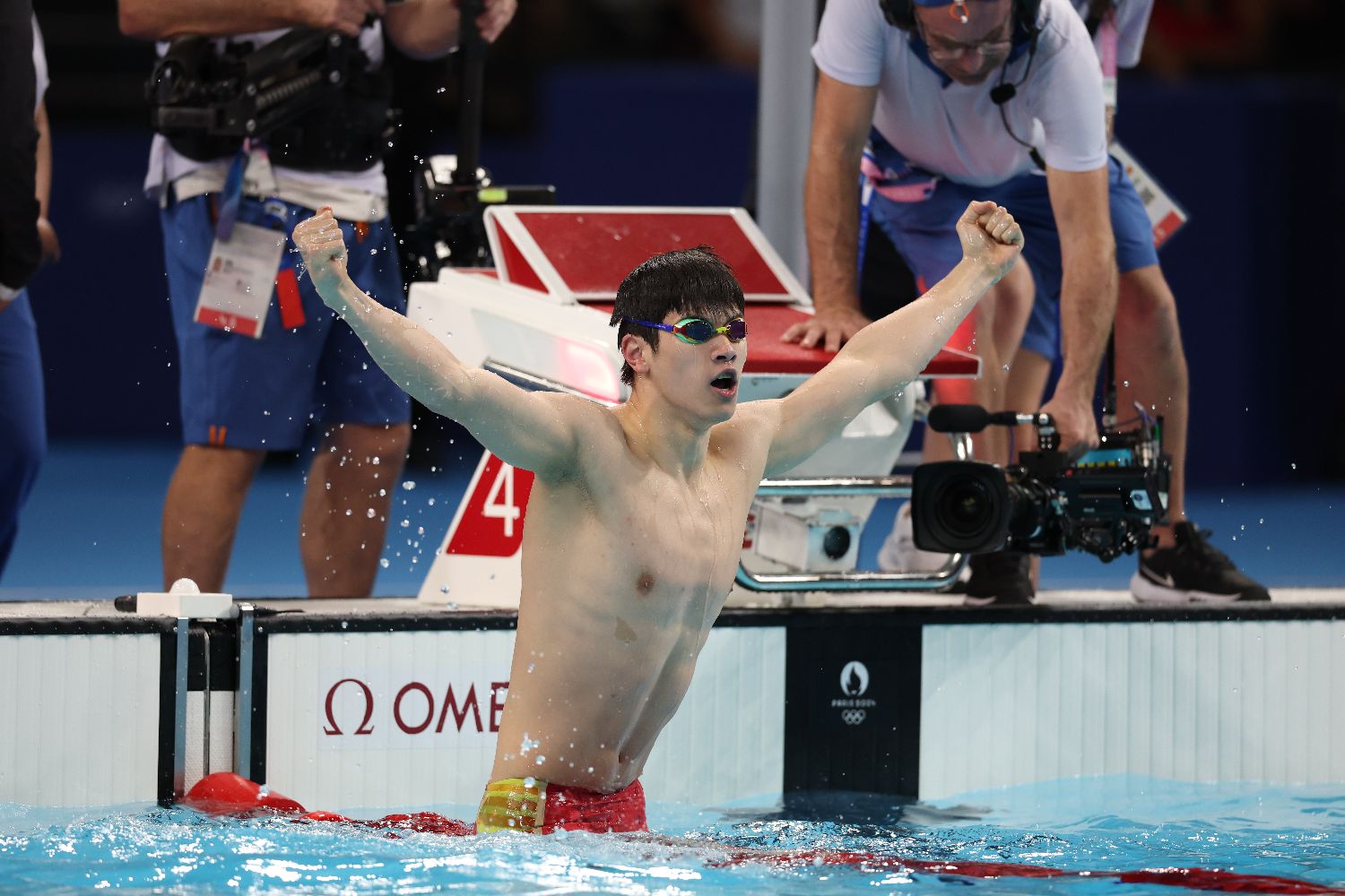 在巴黎奥运会男子100米自由泳决赛中,中国选手潘展乐夺得金牌,并打破世界纪录。(图片来源:香港中通社)