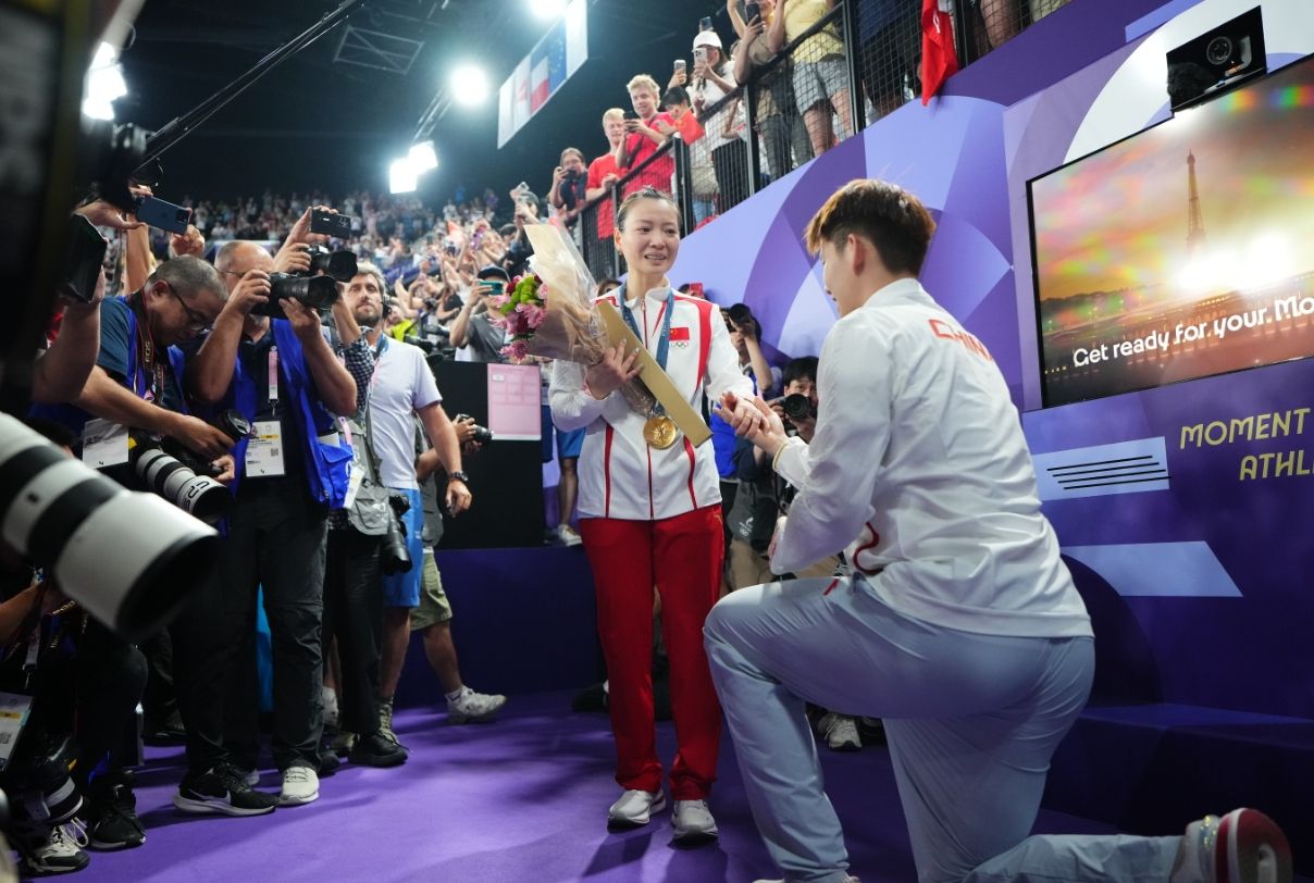 搭档郑思维也为她送上祝福:“上次我是东京失利后求婚,这次是我们夺冠之后雅琼被求婚,所以雅琼的喜悦更大一些,是喜上加喜,真心为她感到开心。”