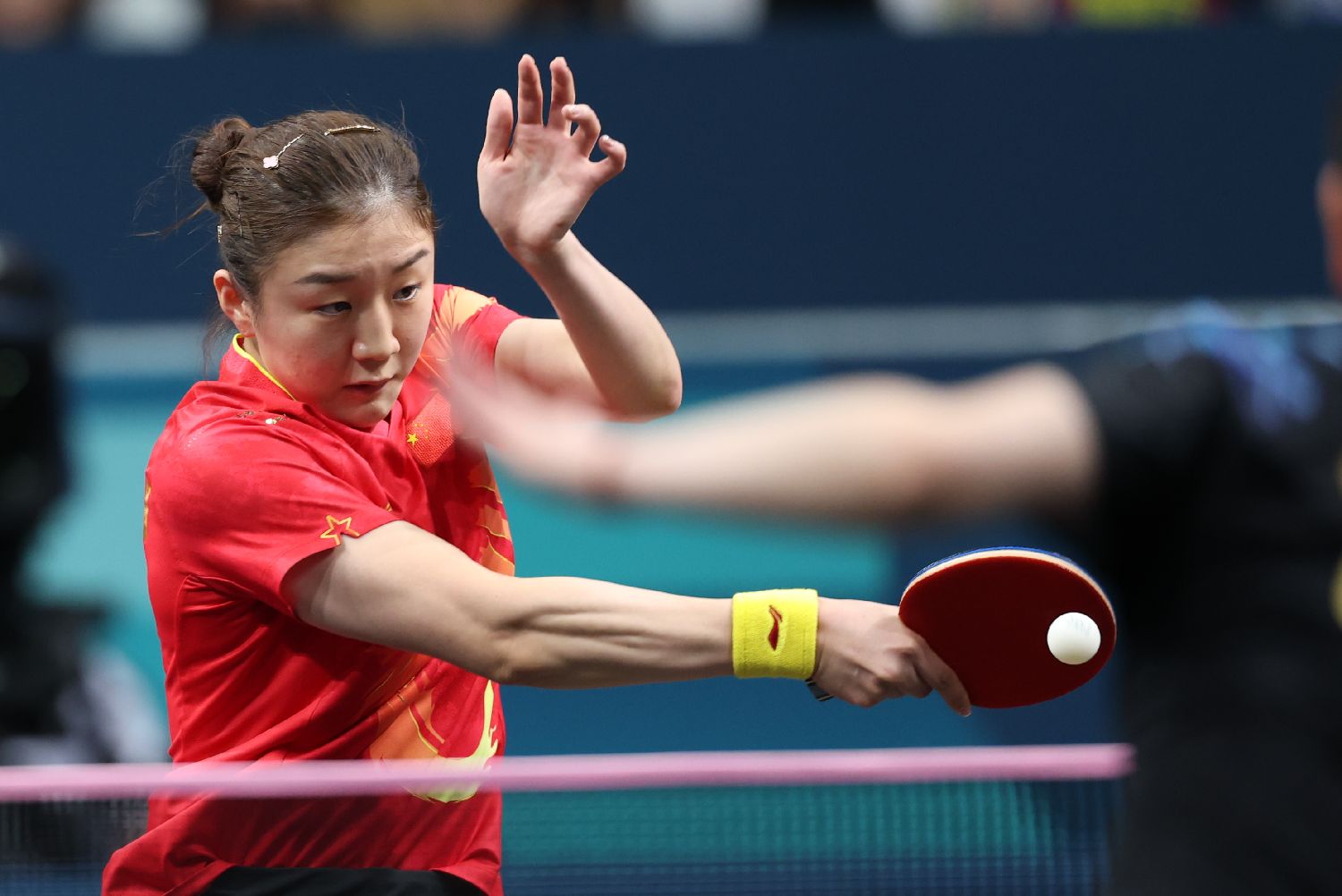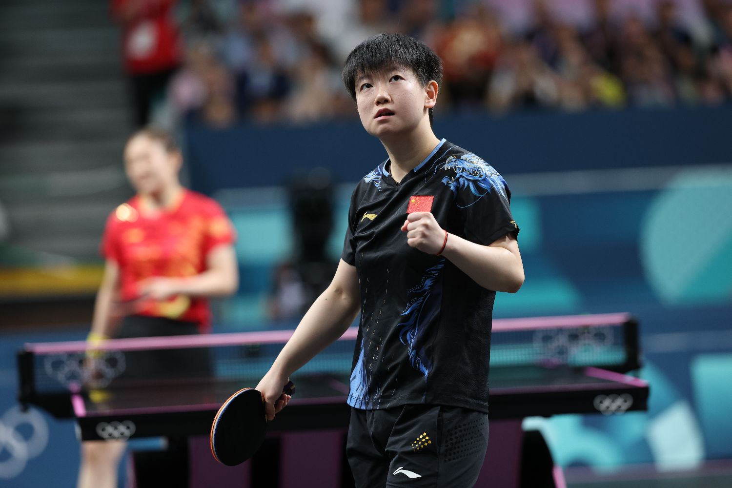 图为孙颖莎在比赛中。