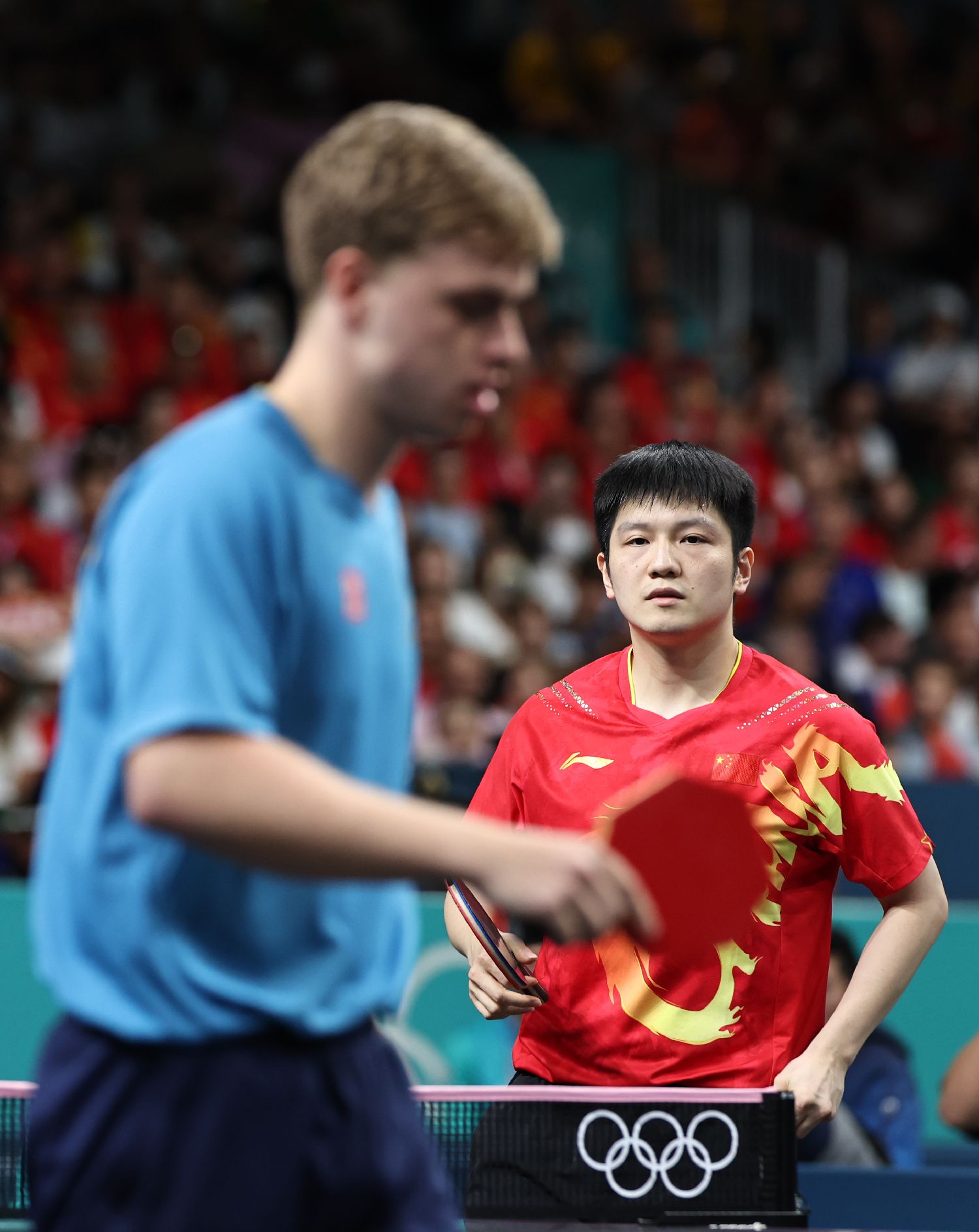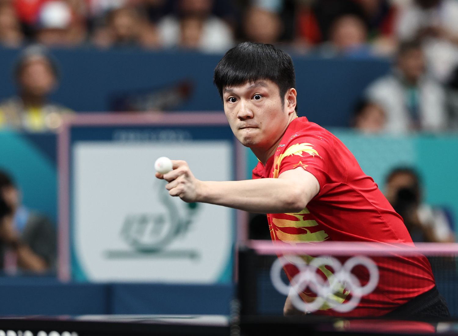 图为樊振东在比赛中。