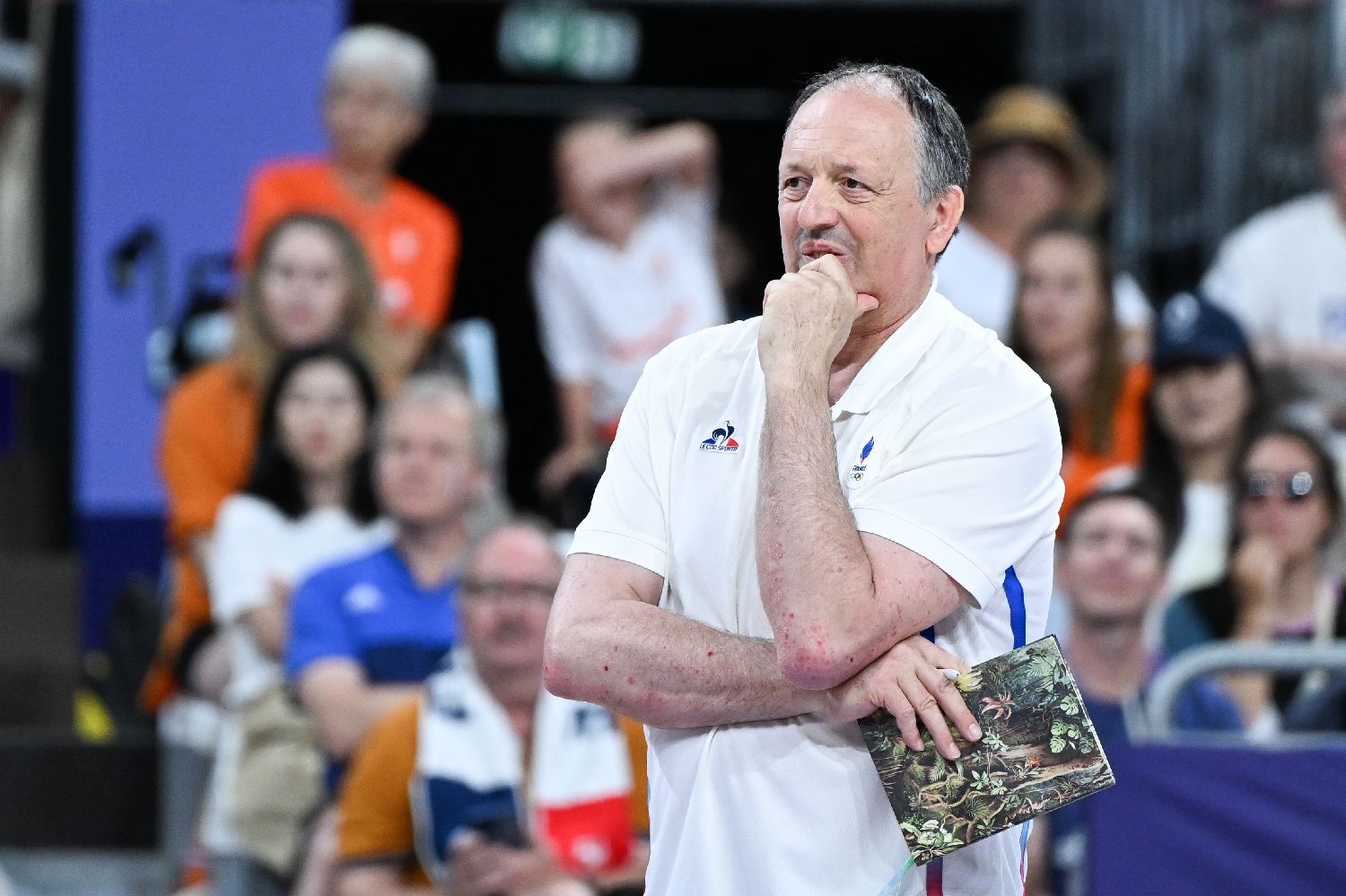 图为法国队主教练卢梭现场观赛。