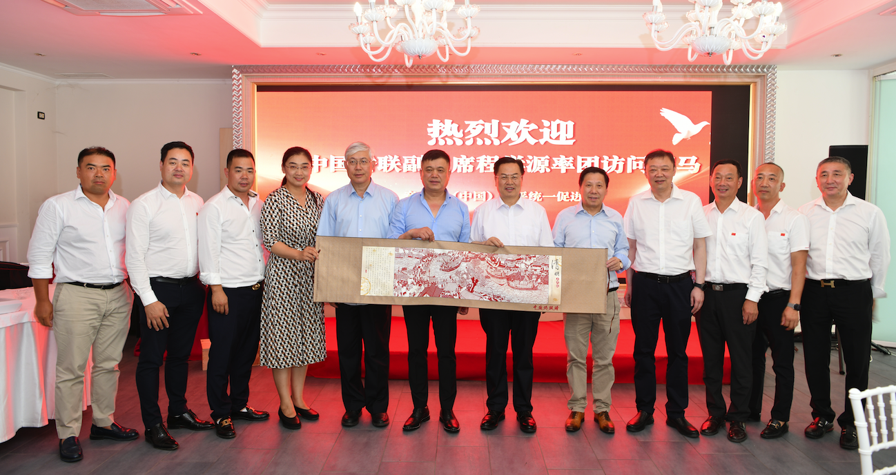 意大利《华人街》(孙玮报道):8月6日,意大利(中国)和平统一促进会举行欢迎宴会,欢迎以中国侨联副主席程学源为团长的中国侨联代表团一行。