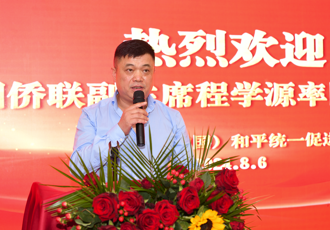 意大利(中国)和平统一促进会会长胡海锋致欢迎词,他说,中国侨联一直是我们海外侨胞的温暖港湾和坚强依靠,始终关心着我们在异国他乡的生活与发展。始终是凝聚侨心侨力的重要纽带,为推动侨胞事业的发展不遗余力。一直以来,积极为侨胞们提供各种帮助和支持,无论是维护侨胞的合法权益,还是促进侨胞的文化交流与传承,都付出了巨大的努力,中国侨联始终关心着我们的生活,为我们排忧解难,让我们在异国他乡也能感受到来自祖国的温暖和关爱。他向代表团介绍了意大利(中国)和平统一促进会发展历程,协会成立于 2011 年,今年 6 月 30 日,举行了换届庆典,并举办了意大利“反独促统”2024 高峰论坛。在那场盛会中,一致通过了“意大利华侨华人反‘独’促统罗马宣言”,在国内外引起了强烈的反响。对于未来,我们充满信心与决心。我们深知,在维护祖国统一、促进中意友好交流的道路上,我们肩负着重要的使命。