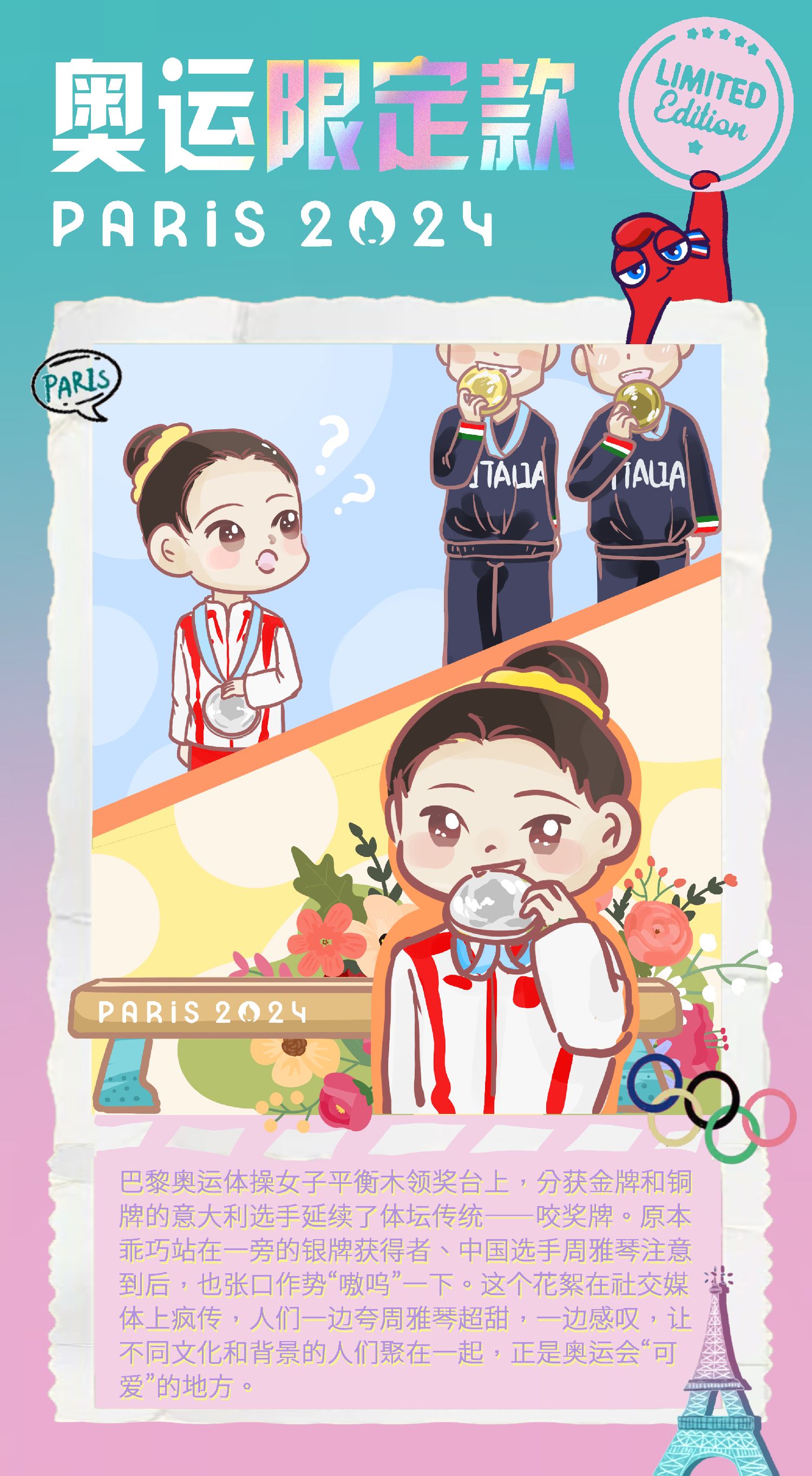 【欧洲时报网】第一次参加奥运会,巴黎奥运体操女子平衡木银牌获得者、中国选手周雅琴就因为可爱而“出圈”。