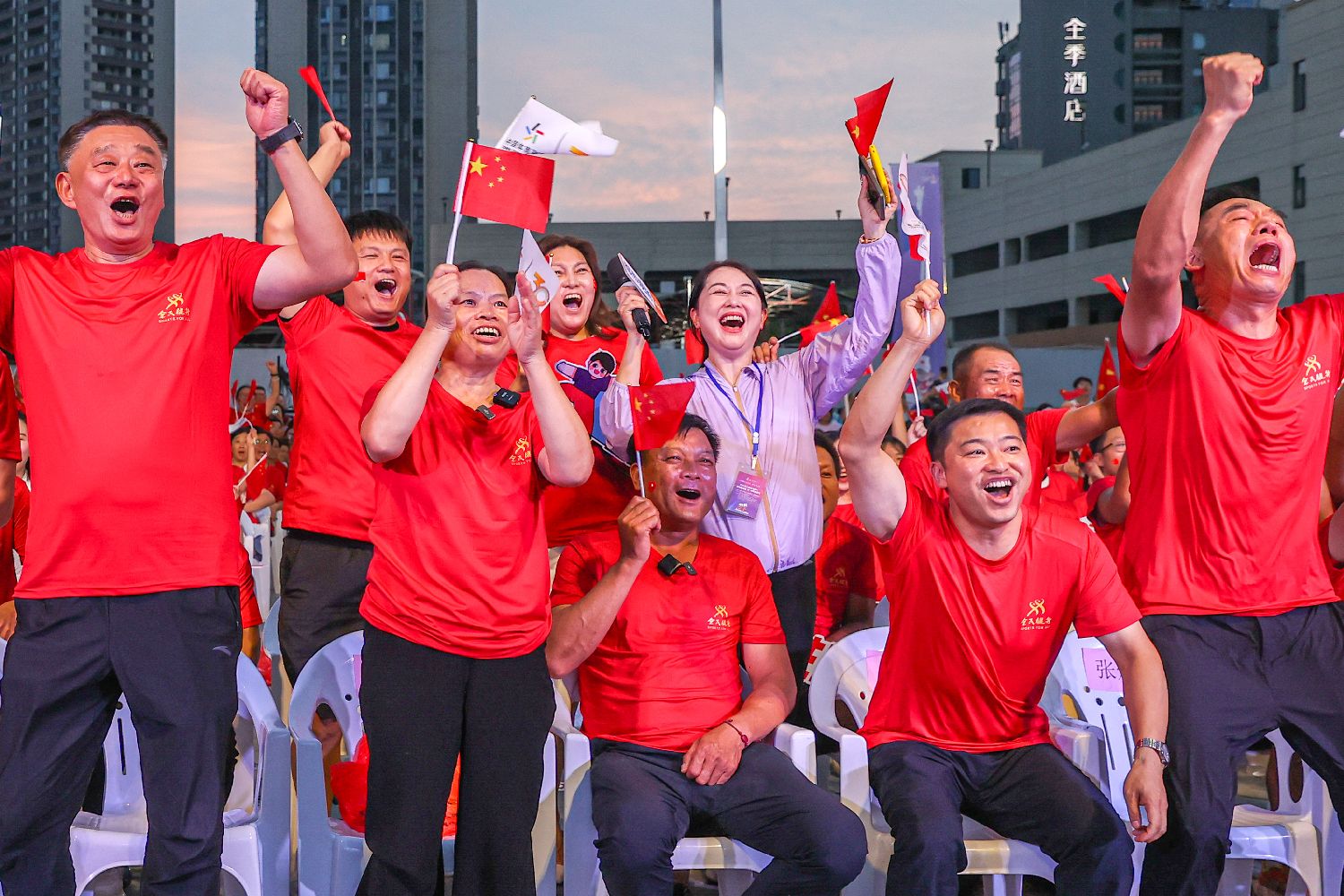 卫冕一刻,距离巴黎9000多公里外的徐诗晓家乡——中国江西省上饶市一片欢腾。“中国队,加油!”“徐诗晓,加油!”在江西上饶一家商场外,徐诗晓的亲友和乡亲们一起观看赛事直播,“隔空”为“诗雅”组合加油呐喊。