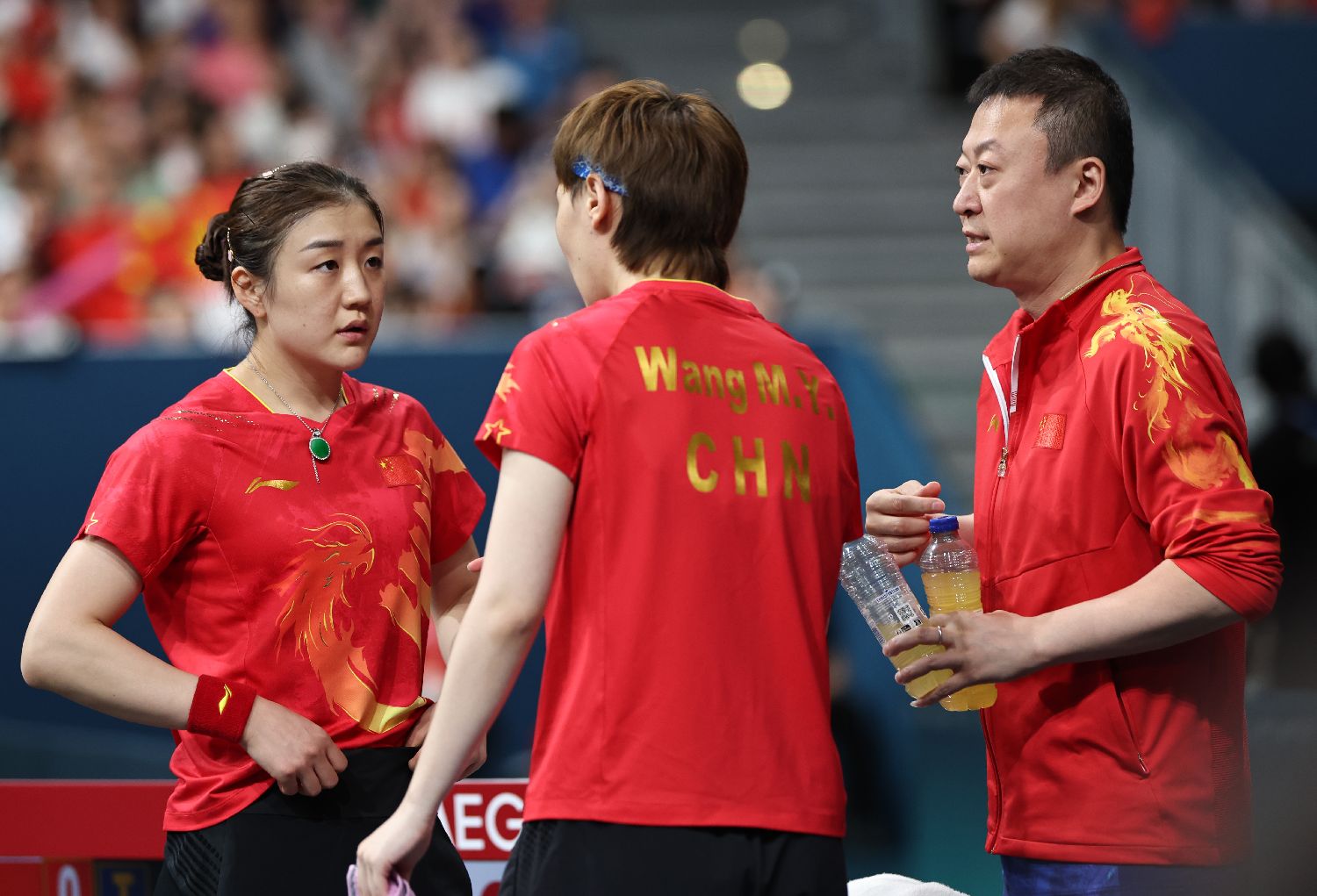 8月10日,教练马琳(右)指导中国组合陈梦(左)/王曼昱。