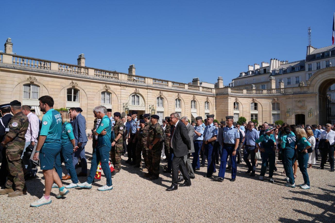 马克龙向这些公私领域代表与2024年巴黎奥运会团队自七年来及赛事期间的共同辛勤工作致敬。爱丽舍宫表示,是时候对这种热情和专业精神表达感谢,并呼吁在将于 8月28日开幕的残奥会上继续这一前所未有的动员行动。正是这些努力让法国人感受到民族自豪感,并使法国的形象在全世界闪耀。