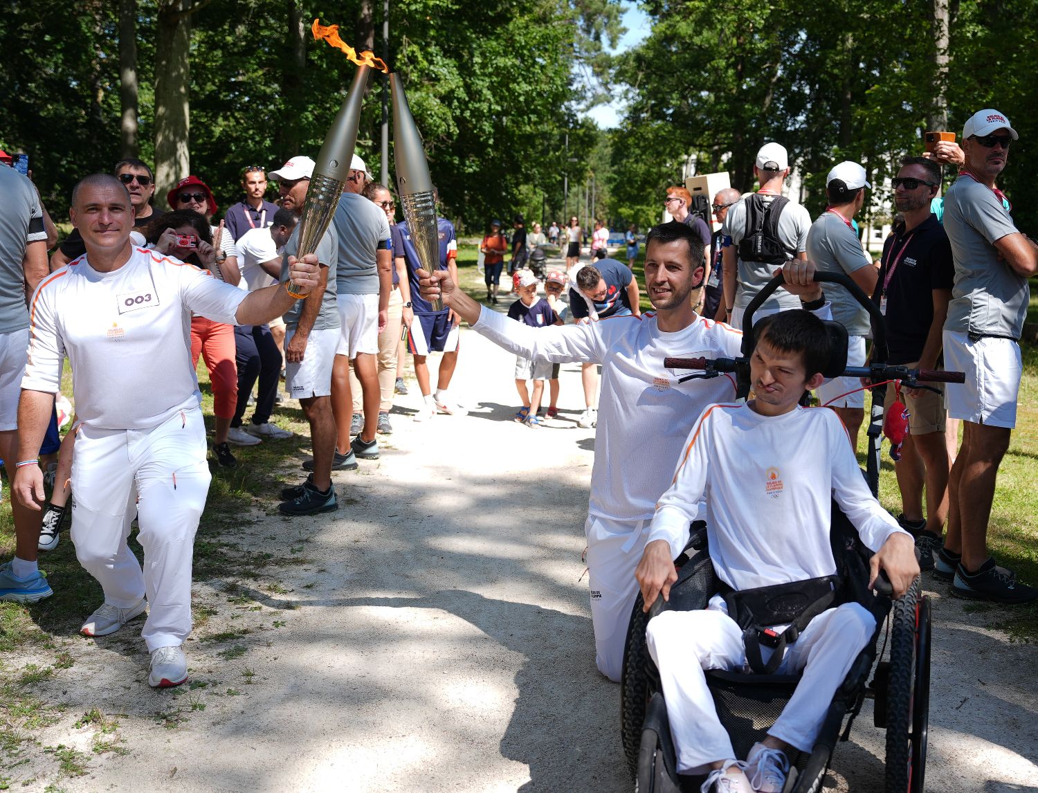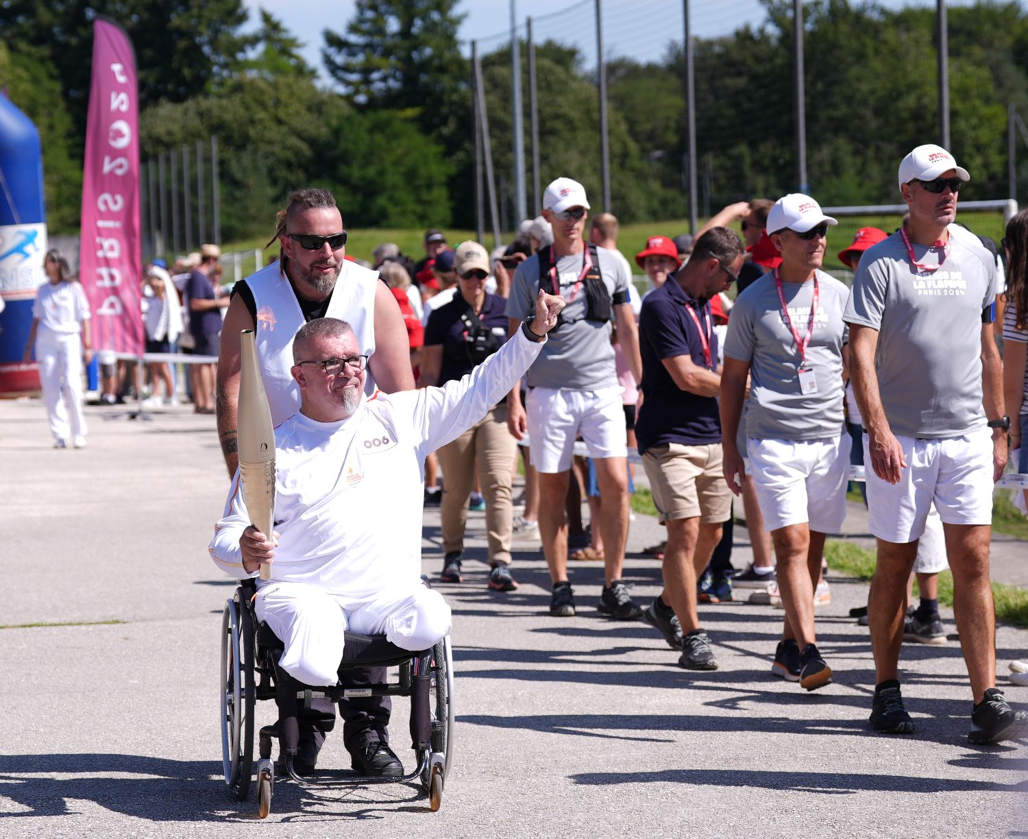 8月27日,巴黎残奥会火炬在法国枫丹白露传递。