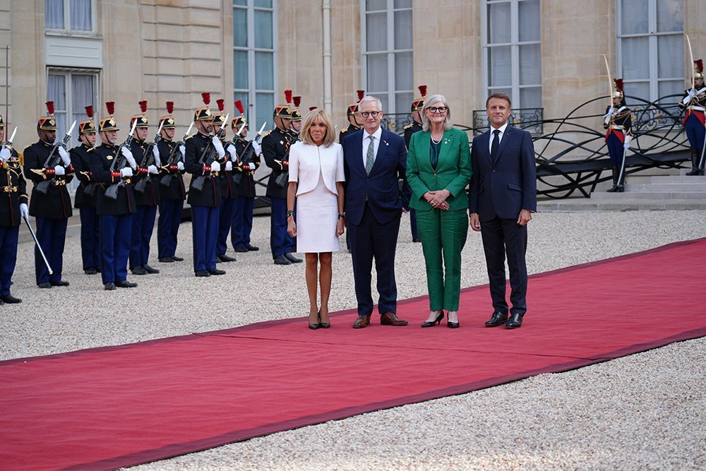 马克龙夫妇迎接澳大利亚总督莫斯廷夫妇。