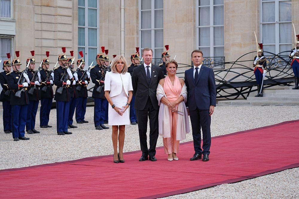 马克龙夫妇与卢森堡大公亨利夫妇合影。