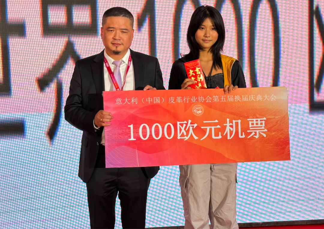 庆典大会主持人还宣布意大利(中国)皮革行业协会名誉会长木明熙赞助10000欧元。
