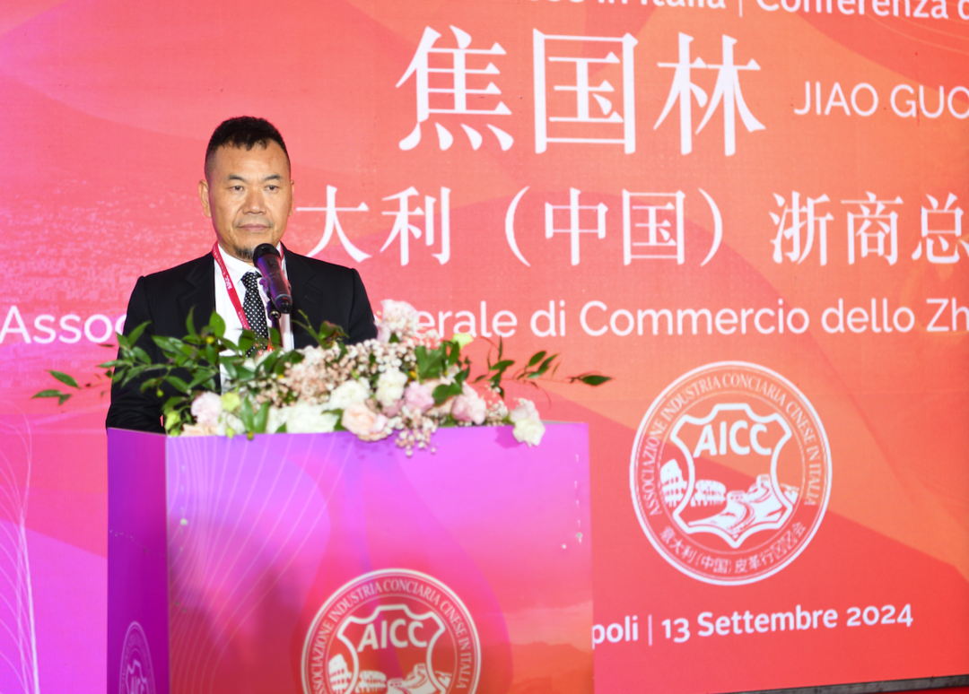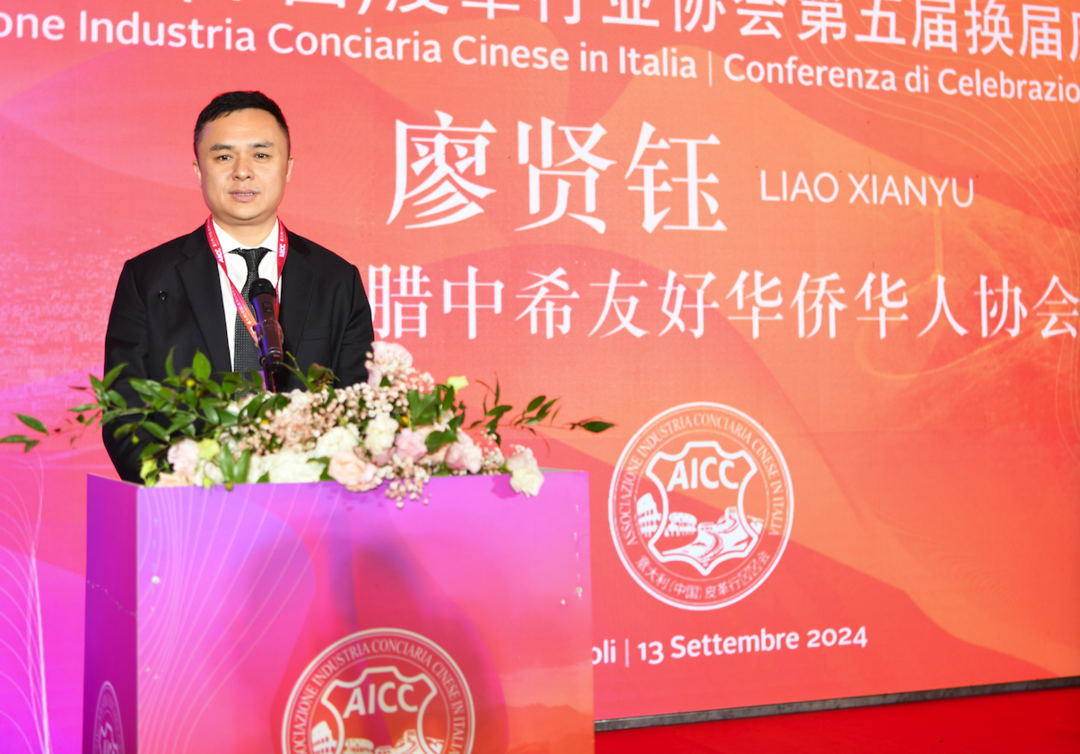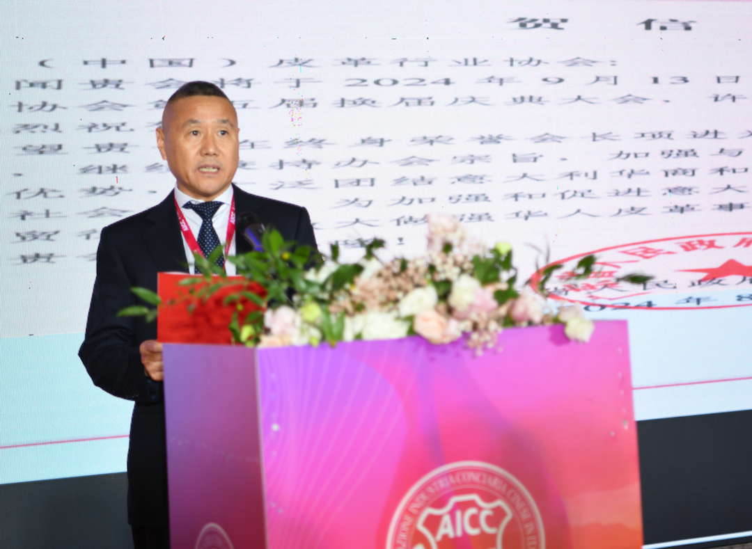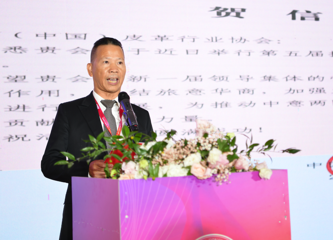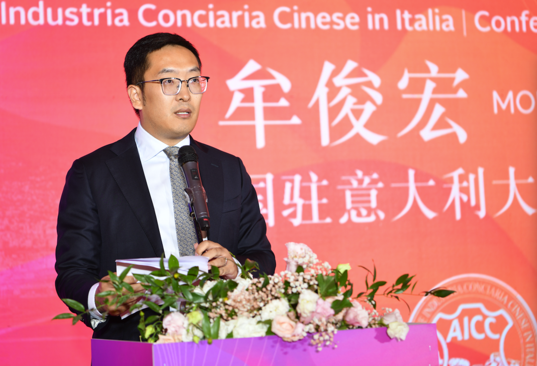 中国驻意大使馆领侨处主任牟俊宏代表使馆致辞 ,他高度评价了意大利(中国)皮革行业协会,他说,意大利(中国)皮革行业协会成立以来,以服务旅意华商、促进皮革行业发展为宗旨目标,秉持爱国爱乡、团结侨胞的优良传统,充分发挥协会桥梁作用,推动中意经贸文化合作,以实际行动推动中意友好。协会聚焦主责主业,注重实绩实效,促进技术革新,协助华商开拓市场,为中意皮革行业交流互鉴开展了卓有成效的工作。