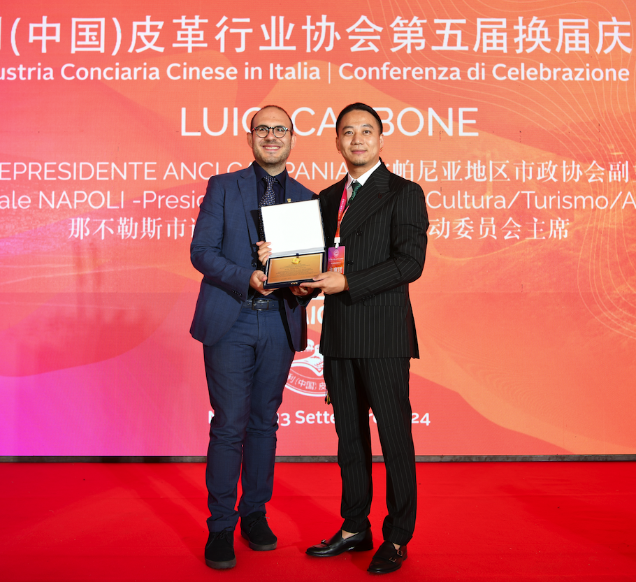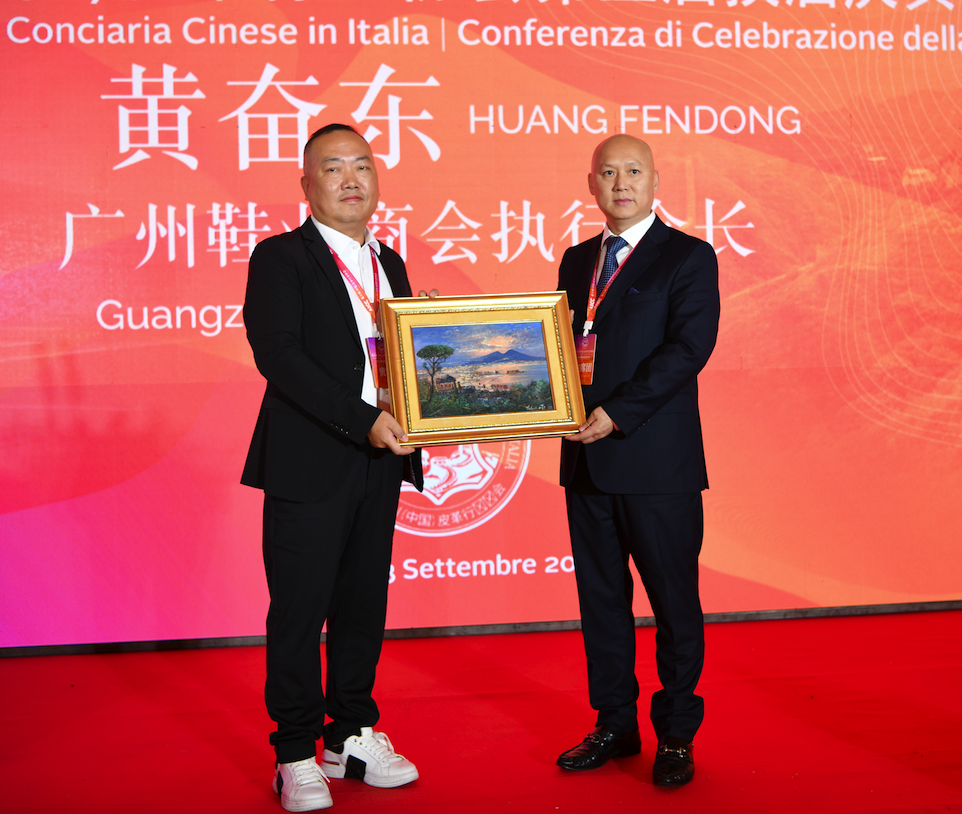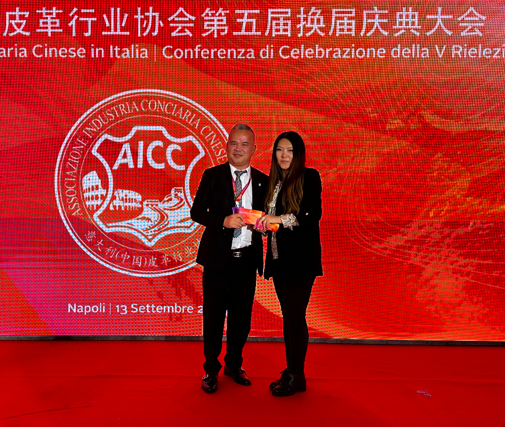 各位来宾,各位同仁,祖国每个阶段的发展,海外华侨华人都曾发挥了重要作用,也作出了举足轻重的贡献。意大利(中国)皮革行业协会在自身发展的同时不忘回馈当地社会。2010年罗马Cammecity发生鞋材检测危及时,协会组织会员单位积极面对,配合各方面的检测,终致风波平息。