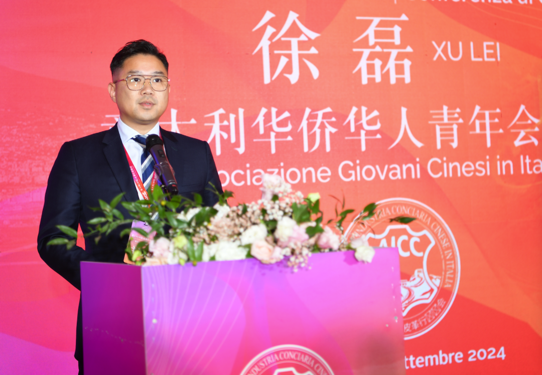 意大利华侨华人青年会会长徐磊先生代表罗马侨界致辞
