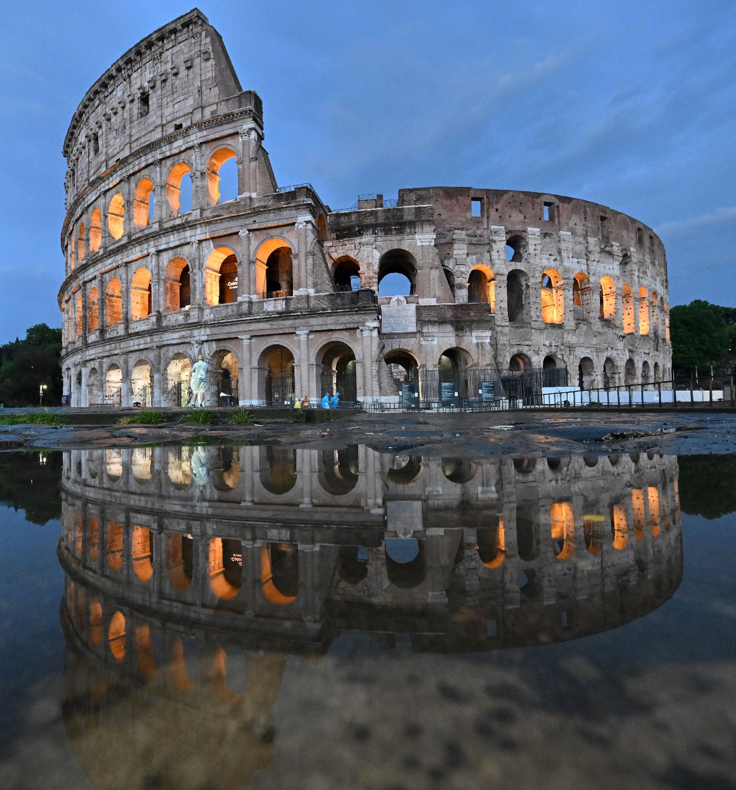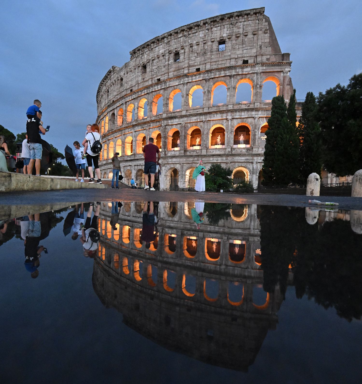 7月13日,在意大利罗马,民众在大雨过后来到斗兽场。