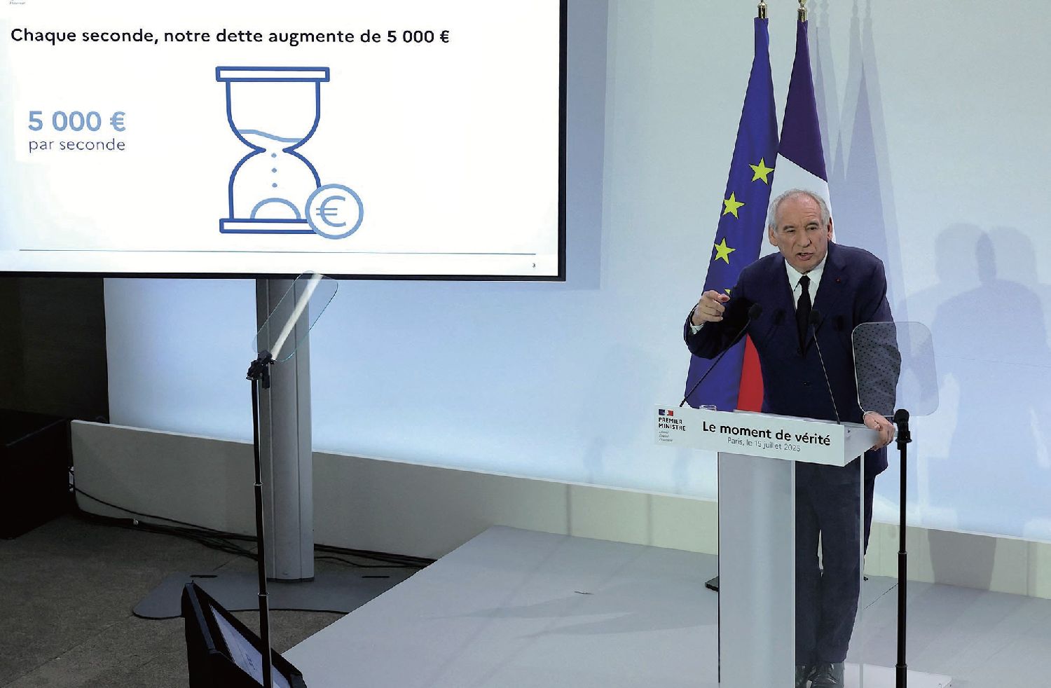 白鲁总理警告说:“每一秒钟,法国的债务就会增加5000欧元。”法新社图