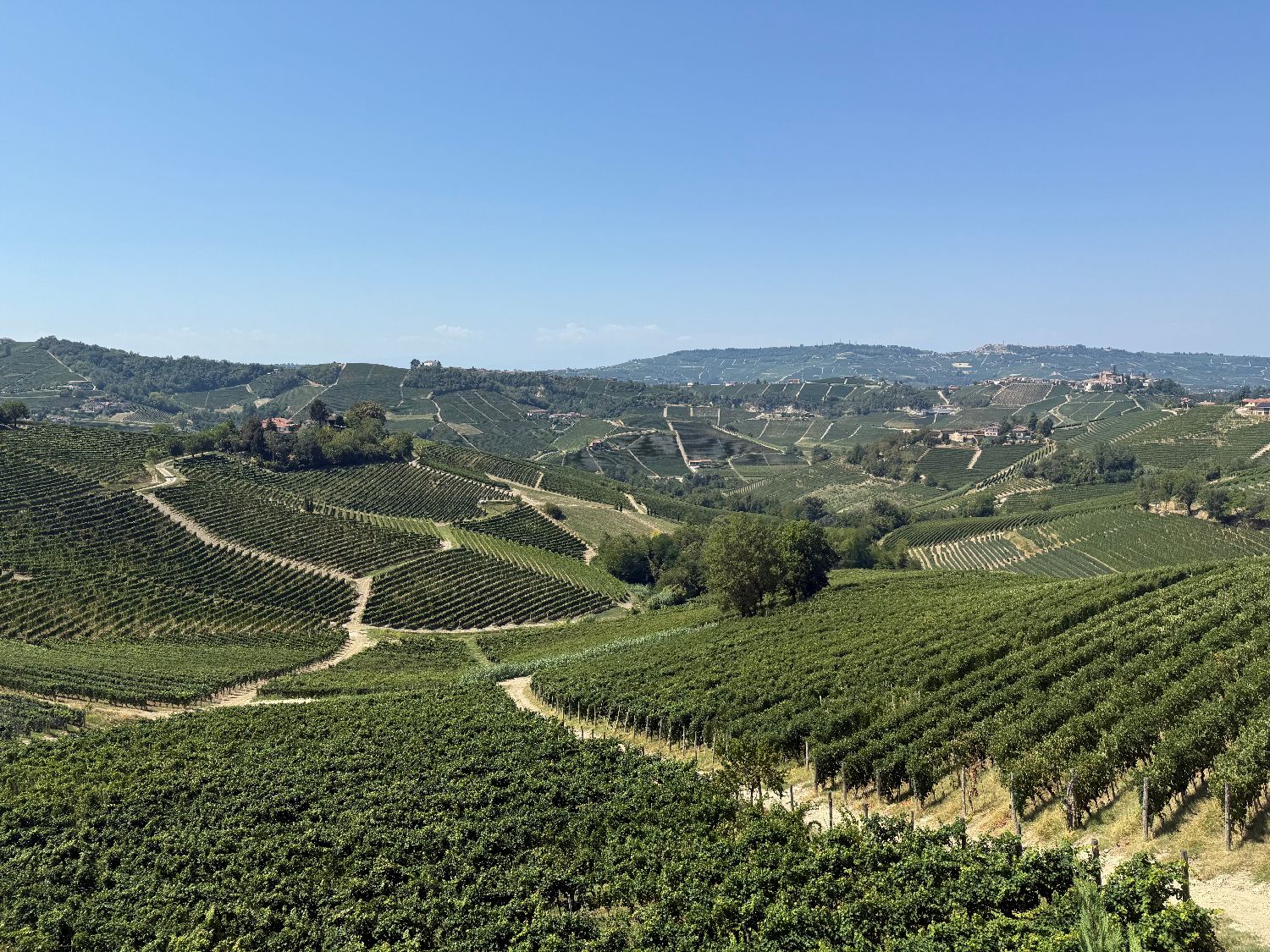 8月17日拍摄的意大利塞拉伦加达尔巴镇的葡萄园。他担忧地说:“关税成本最终由酒庄、进口商和消费者等多方共同承担。如果关税继续上涨,我们的酒在美国会越来越贵,最后可能没人愿意再买。”