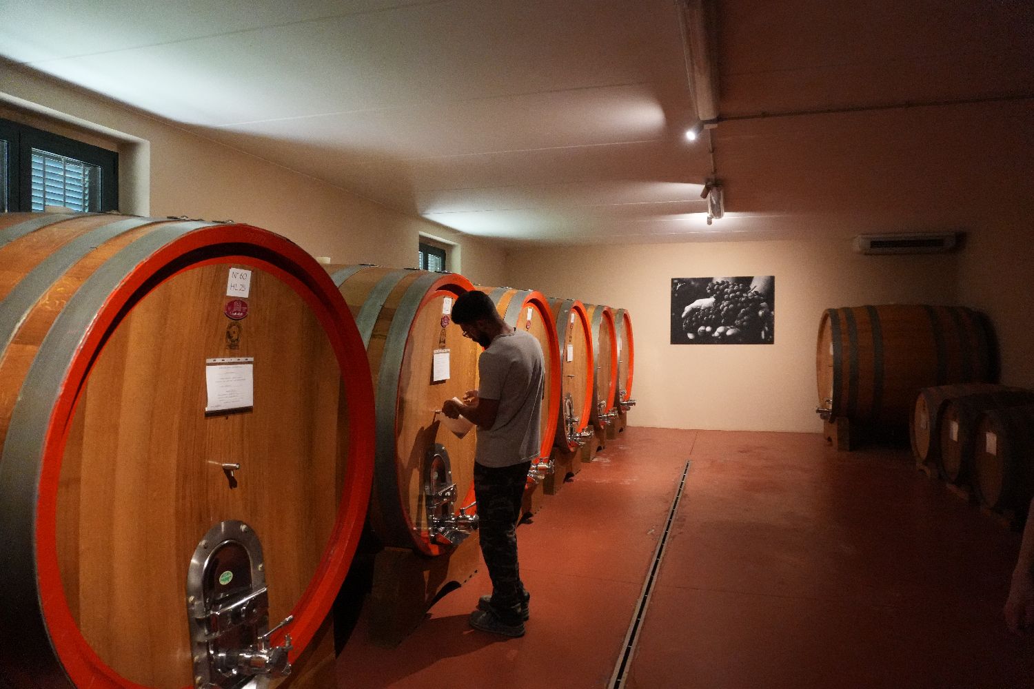 在塞拉伦加达尔巴镇,圭多·波罗酒庄的掌门人法比奥·波罗透露,美国关税对酒庄影响很大。“我们不得不向美国合作方让利,把利润压低了大约5%,否则合作可能维持不下去。但这样一来,我们的收益的确受损。”图为8月17日,在意大利塞拉伦加达尔巴镇,圭多·波罗酒庄的掌门人法比奥·波罗在酒庄地窖里工作。