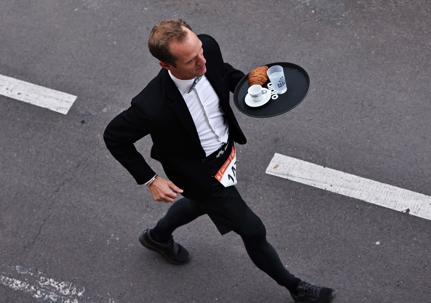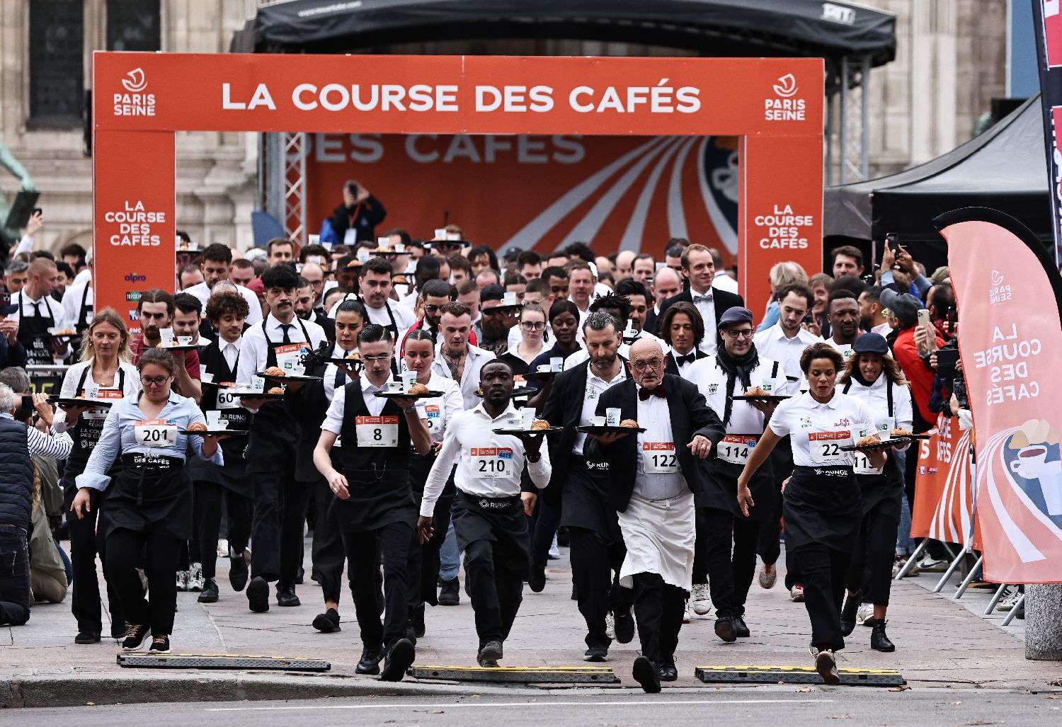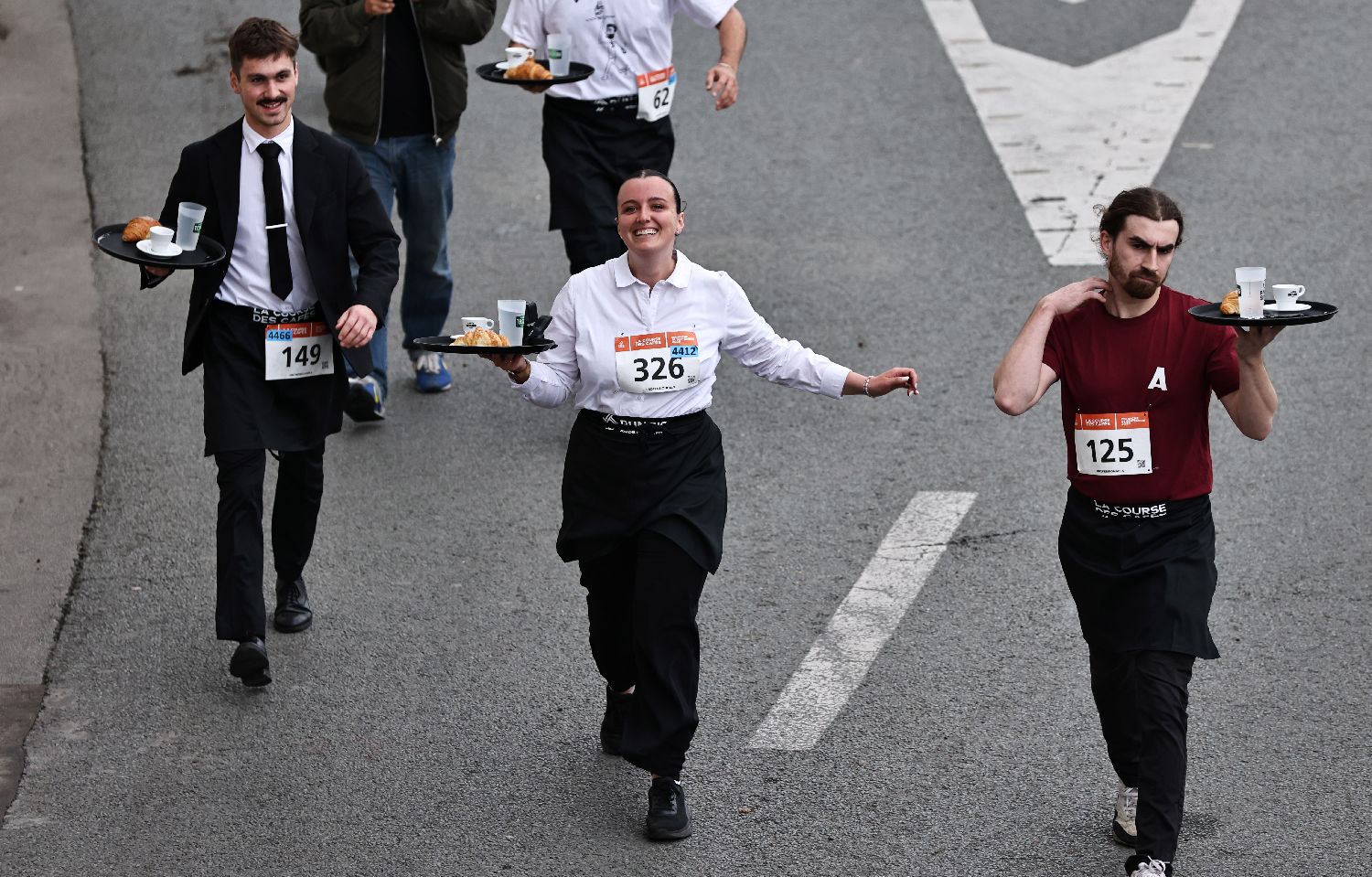 巴黎服务员赛跑最早始于1914年。今年还增加了普通民众赛跑环节。