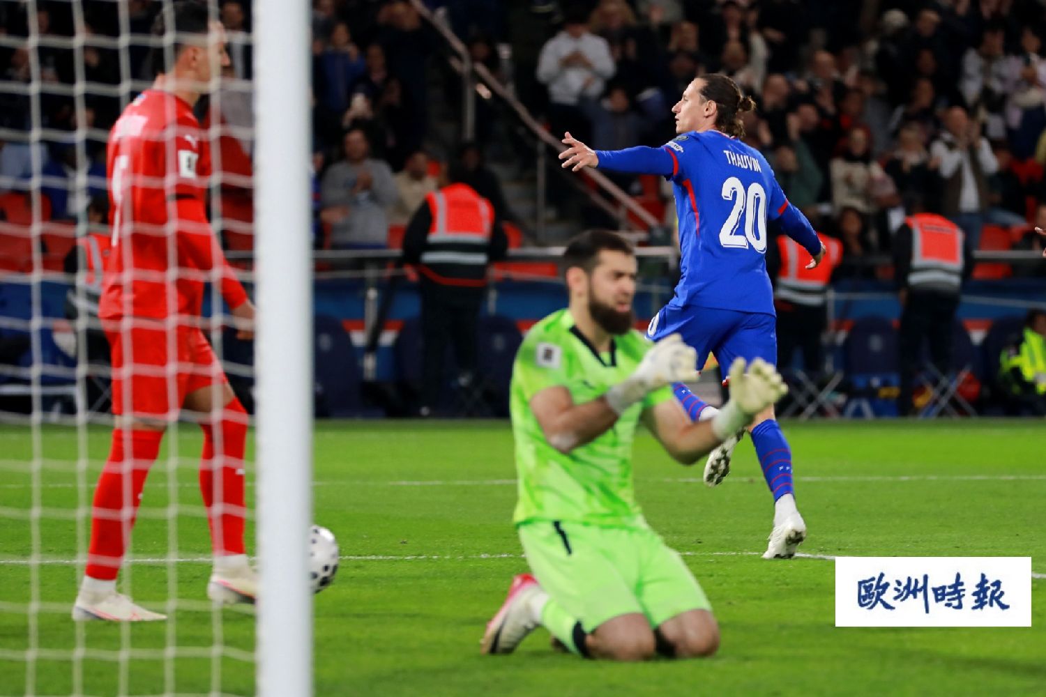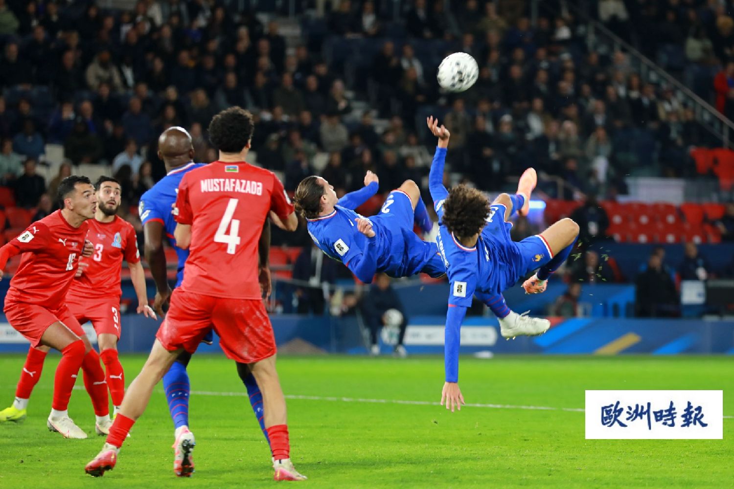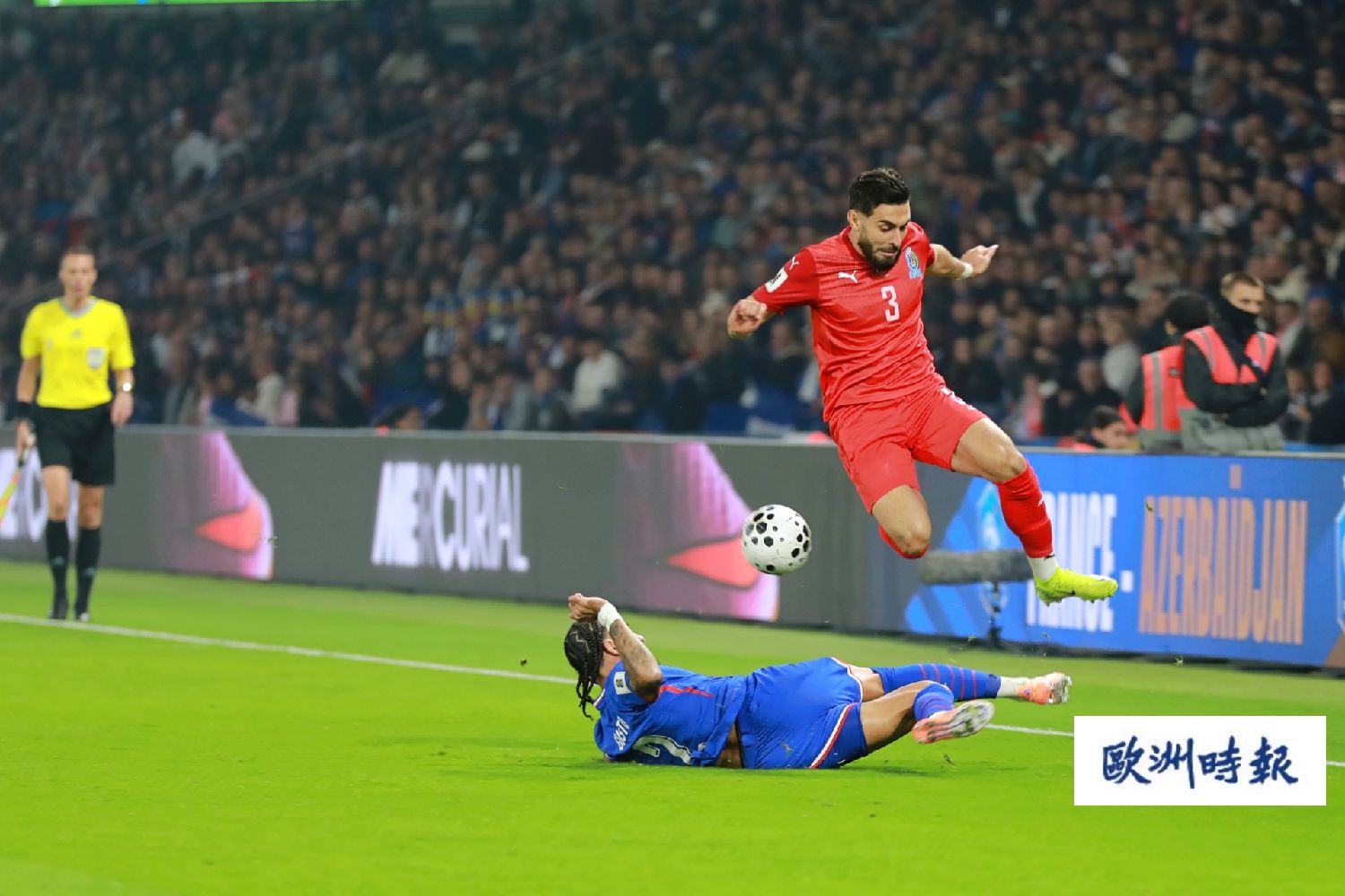 第84分钟,法国队左路策动进攻,特奥下底传中,替补登场的托万禁区内凌空倒射为法国队打入第三球。最终,法国队以3比0击败阿塞拜疆队。