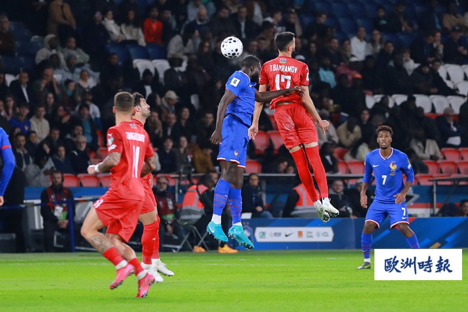 下半场异地再战。第69分钟,法国队右侧角球罚向禁区中路,阿塞拜疆解围不远落到后点姆巴佩脚下,后者稍作调整再次传中,拉比奥门前头球破门,法国队2比0领先。