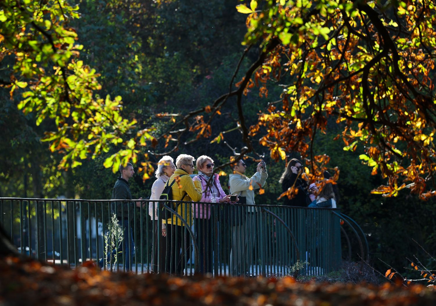 11月5日,在意大利米兰,人们在森皮奥内公园赏秋。