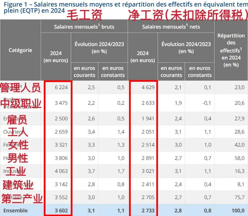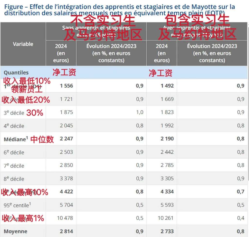 此外,根据统经所今年10月发布的报告,2024年法国私营部门的工资中位数为2190欧元/月。这意味着,一半雇员的净收入低于2190欧元。
