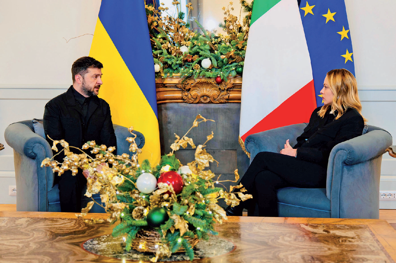 12月9日,意大利总理梅洛尼在罗马会见了乌克兰总统泽连斯基。(图片来源:意大利总理府官网 )