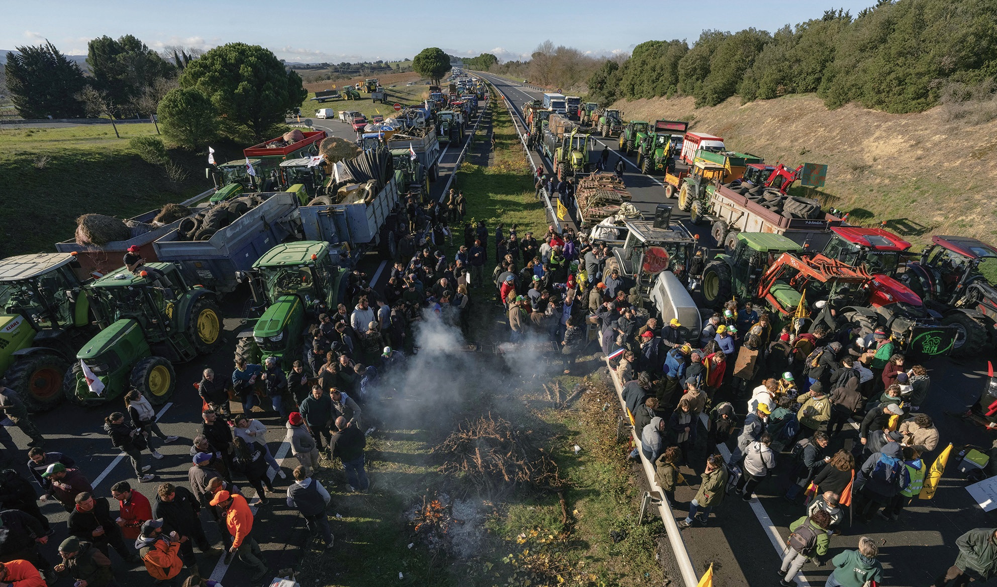 法新社报道,在奥德省,农民驾驶约60辆拖拉机,分别从从纳博讷(Narbonne)和卡斯泰尔诺达里(Castelnaudary)出发,在卡尔卡松(Carcassonne)附近的A61高速公路会合,试图封锁这处从工业重镇图卢兹通往地中海沿岸和西班牙的交通咽喉。宪兵部队一路尾随监视。