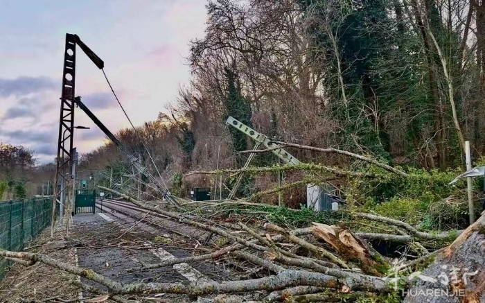 电车T8埃皮奈-欧尔日蒙(Epinay-Orgemont)—德洛奈-美丽城(Delaunay-Belleville)因树倒中断;T14全线停至14时。克雷泰伊(Créteil)—维勒讷夫圣乔治(Villeneuve-Saint-Georges)缆车C1周五早恢复低速运行。