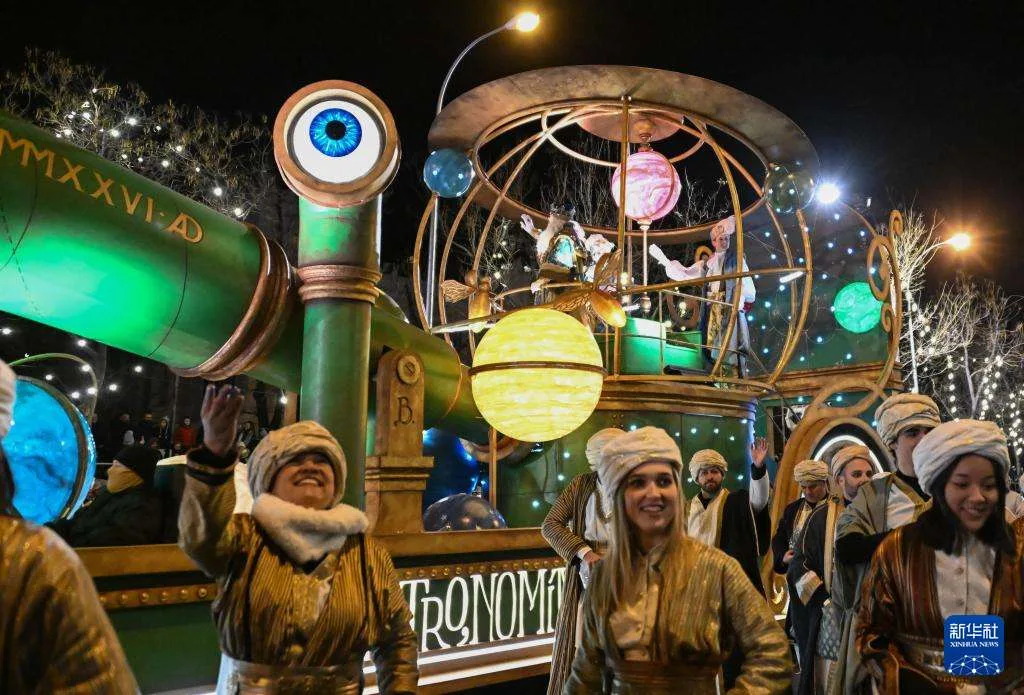 1月5日,西班牙马德里举行盛大的“三王节”彩车大巡游,吸引成千上万市民前来观看。每年1月6日是西班牙传统的“三王节”。