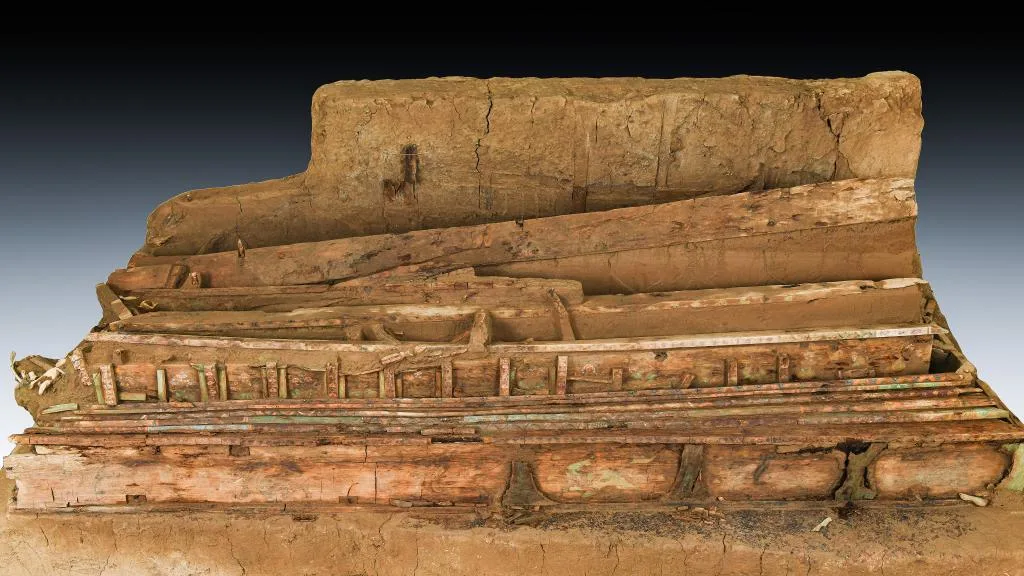 这是墓葬M20出土的彩色木棺(资料照片)。